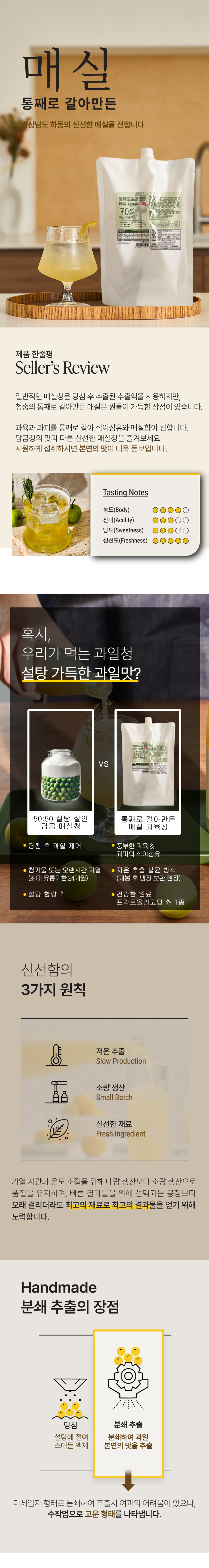 -The nutritional content of the fruit is relatively higher in the skin and seeds than in the pulp, but the reason why the pulp is preferred is because of the fragrant juice and sweetness of the pulp. It is a 'whole ground fresh fruit' that focuses a little more on the natural taste of the fruit and aims to convey the various aromas and richness of the fruit as well as the pulp.