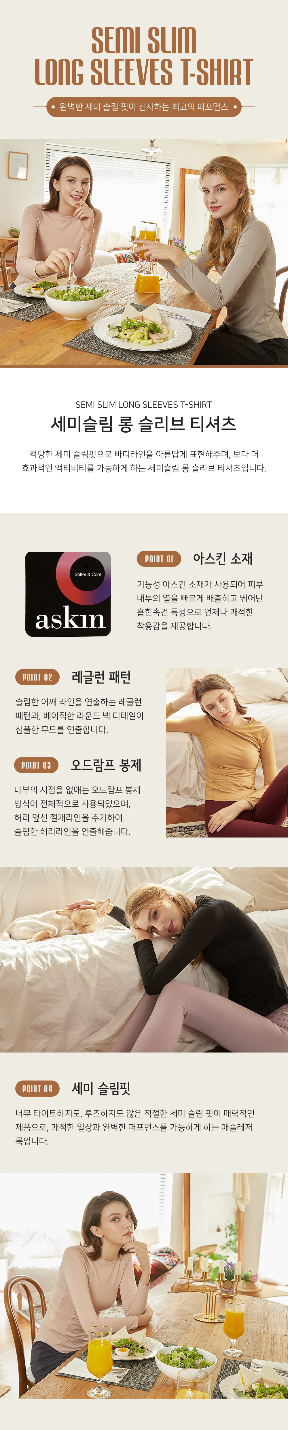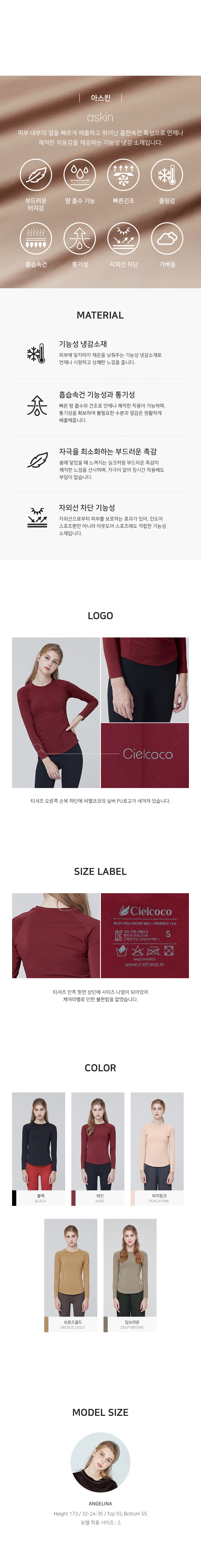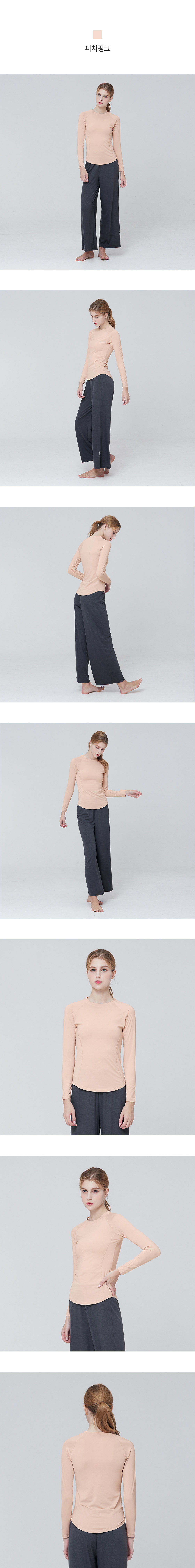 [Cielcoco] CLWT8069 Semi-Slim Long Sleeve T-shirt Peach Pink, Gym wear, Sweats, Sportswear, Jogging Clothes, T-shirts, Fashion Sportswear, Casual tops For Women _ Made in KOREA