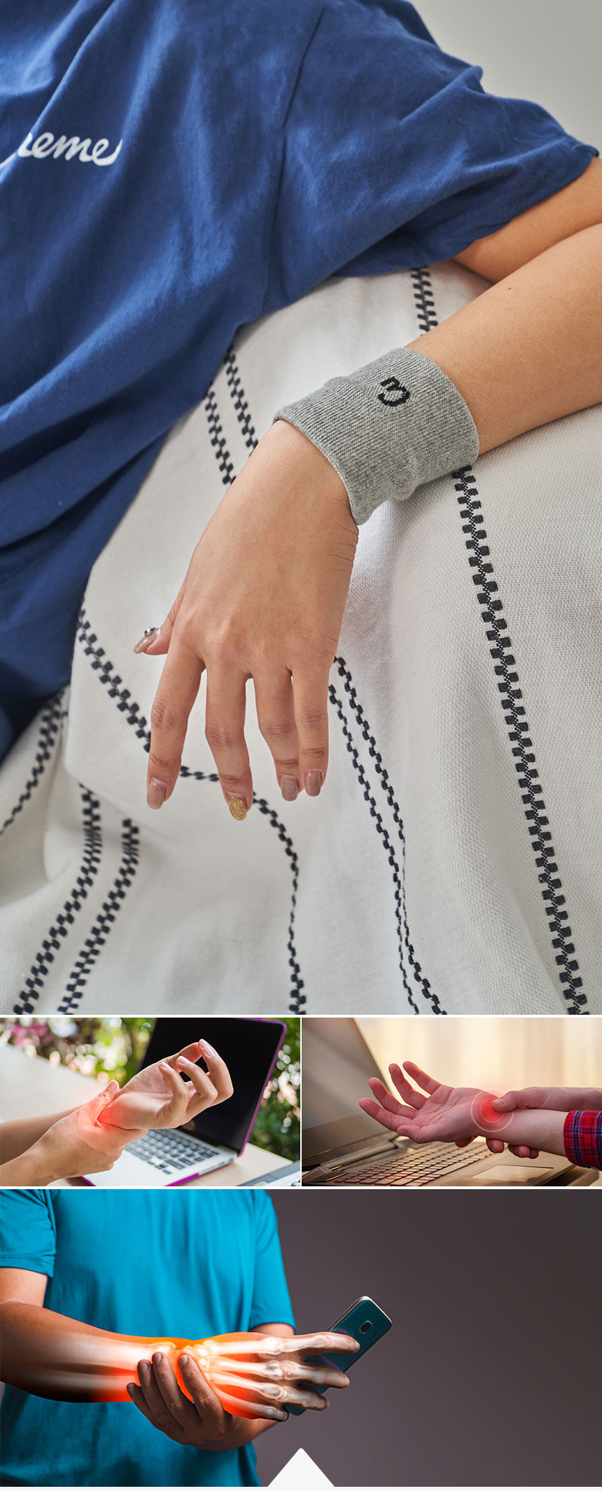 Copper fabric wrist support provides pain relief by holding the wrist elastically for individuals who suffer from pain due to excessive use of the wrist, such as overuse from exercise, heavy lifting, or prolonged computer use and promotes quick recovery with its high functionality.