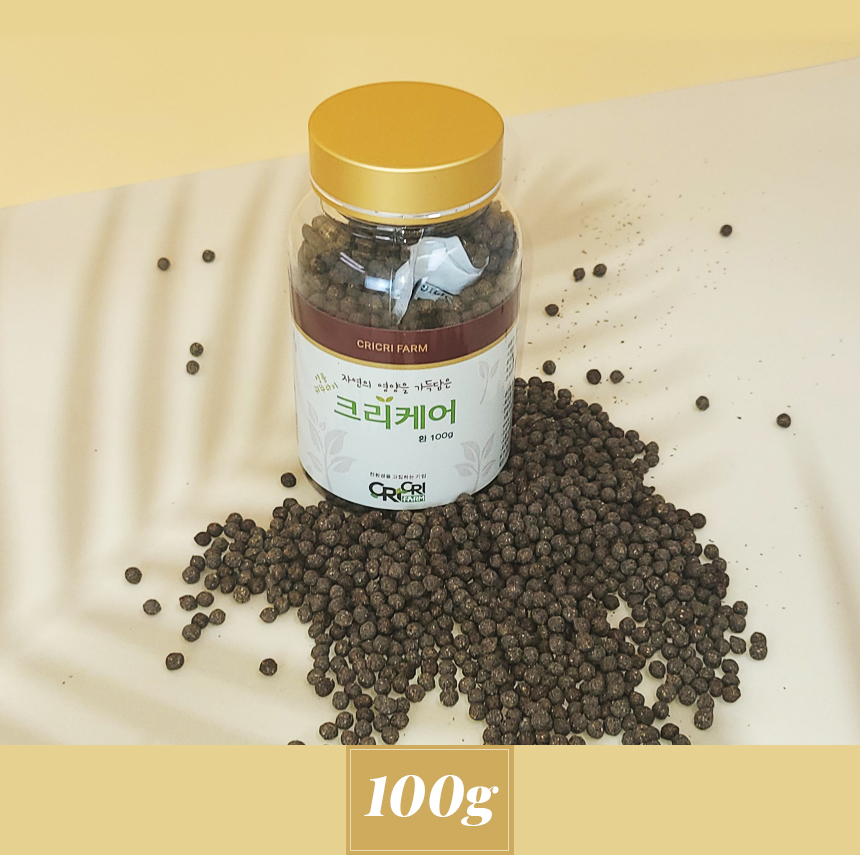 A health food made with luxury raised edible crickets, with excellent nutritional status by growing cabbage, corn, fruits, vegetables, seaweed, kelp, rice cakes, grains, etc. Collected from the nature of our land!