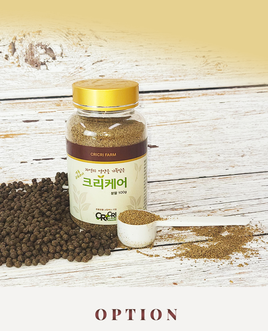 | Raw materials and content | Pill - Double-starred cricket 70% (domestic), bitter gourd 20% (China), dried sulfur 9% (China), lactic acid bacteria culture medium 1% Powder - Double star cricket 100% (domestic) |