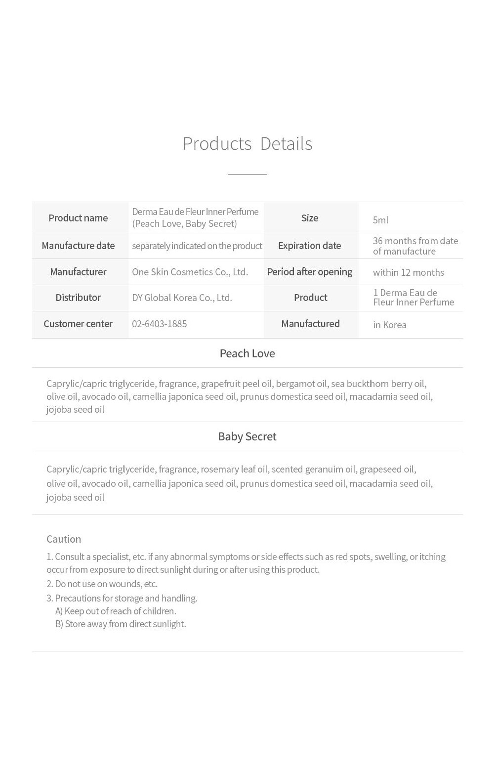 [DERMA EAU DE] Fleur Inner Perfume Baby Powder (5ml) _ Mild feminine cleanser, Y-zone Cleanser_ Made in KOREA