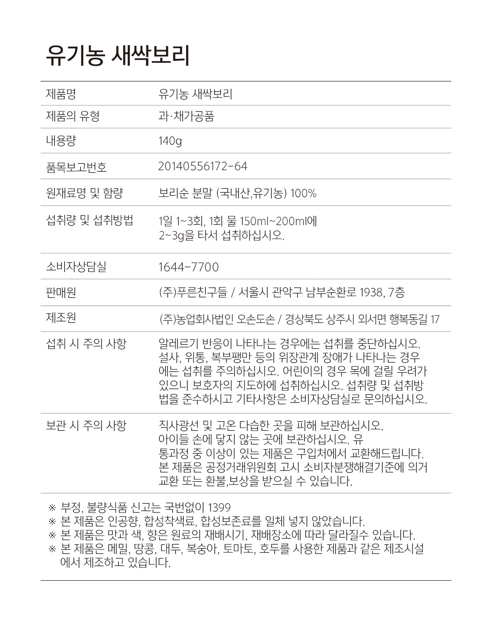 [Green Friends] Organic Barley Sprout Powder 2Pack _ 140g/ 4.93oz, 100% Korean Organic Barley Sprouts, Vegan, Rich Nutrients, Diet Food _ Made in Korea