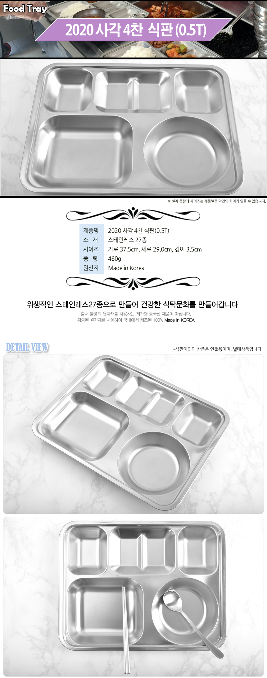 [HAEMO] 2020 Square 4-side Meal Tray (0.5T) _ Reusable Stainless Steel Korean Chopstix Spoon Tableware Home, Kitchen or Restaurant_Made in Korea