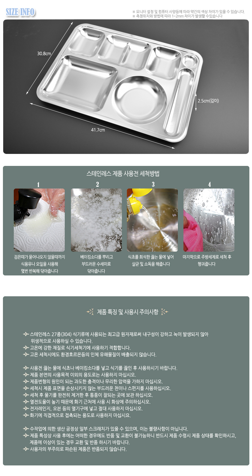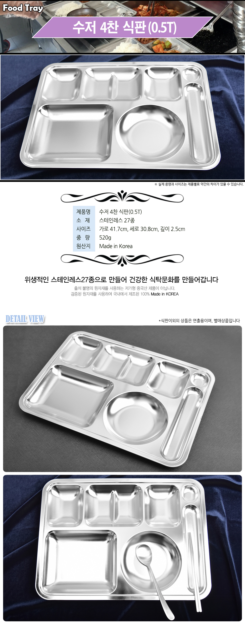 [HAEMO] 4-side Meal Tray ( spoon and chopsticks) 0.5T _ Reusable Stainless Steel Korean Chopstix Spoon Tableware Home, Kitchen or Restaurant,Made in korea,