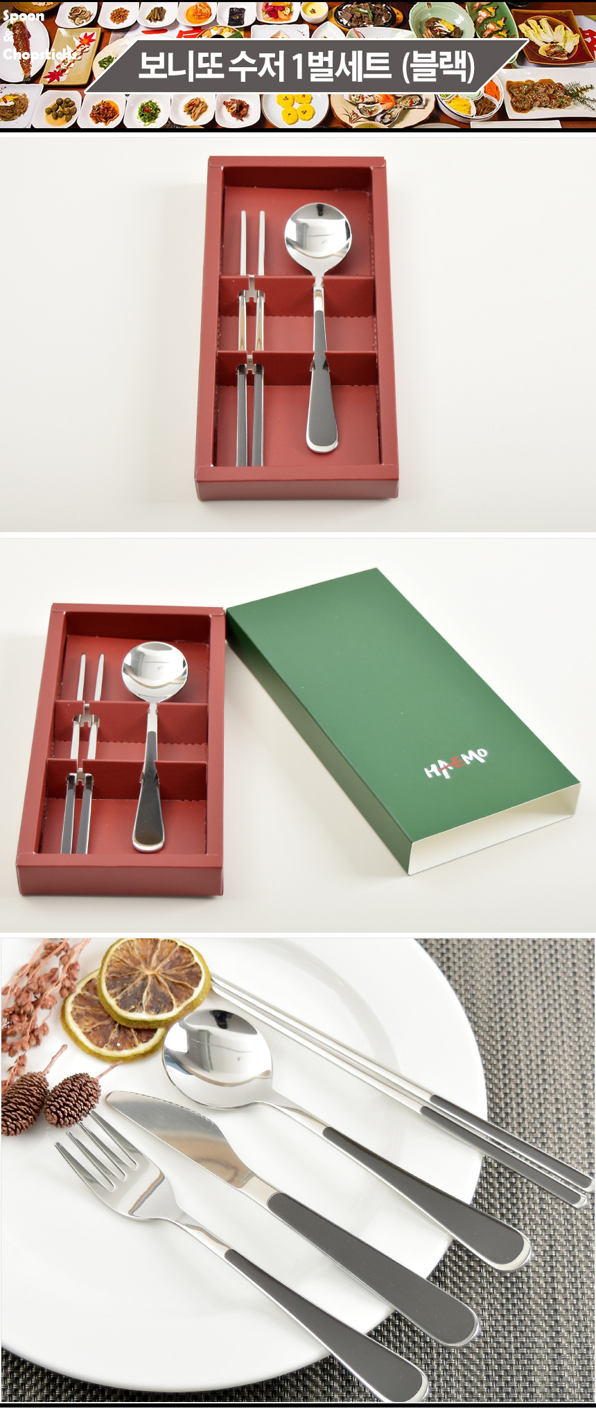 [HAEMO] Bonitto _ Black, Spoon Chopsticks, 1 Set _ Reusable Stainless Steel, Korean Chopsticks Spoon _ Made in KOREA