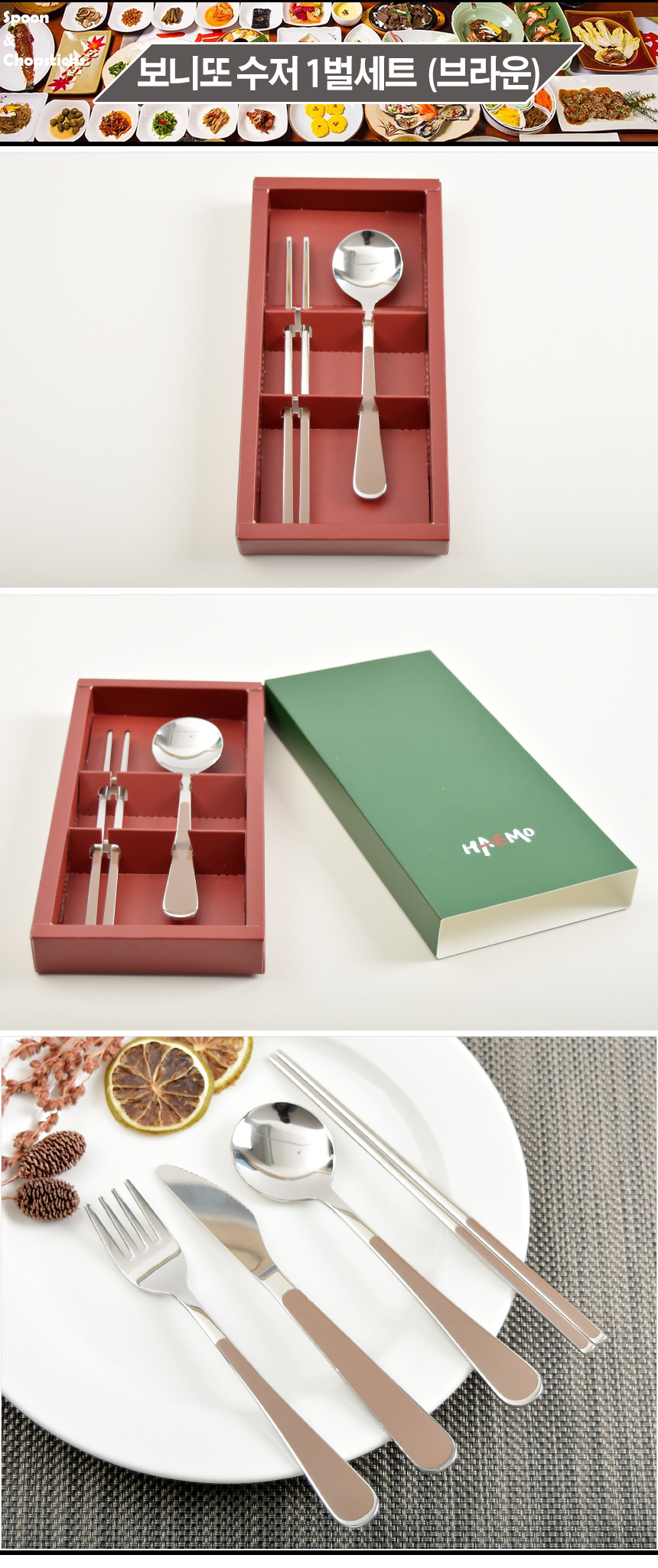 [HAEMO] Bonitto _ Brown, Spoon Chopsticks, 1 Set _ Reusable Stainless Steel, Korean Chopsticks Spoon _ Made in KOREA
