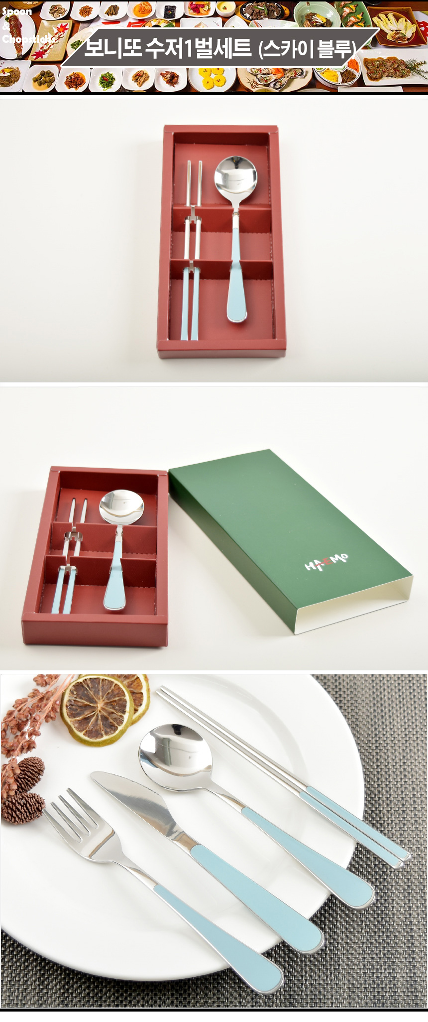[HAEMO] Bonitto_ Sky Blue, Spoon & Chopsticks, 1 Set _ Reusable Stainless Steel, Korean Chopsticks Spoon _ Made in KOREA