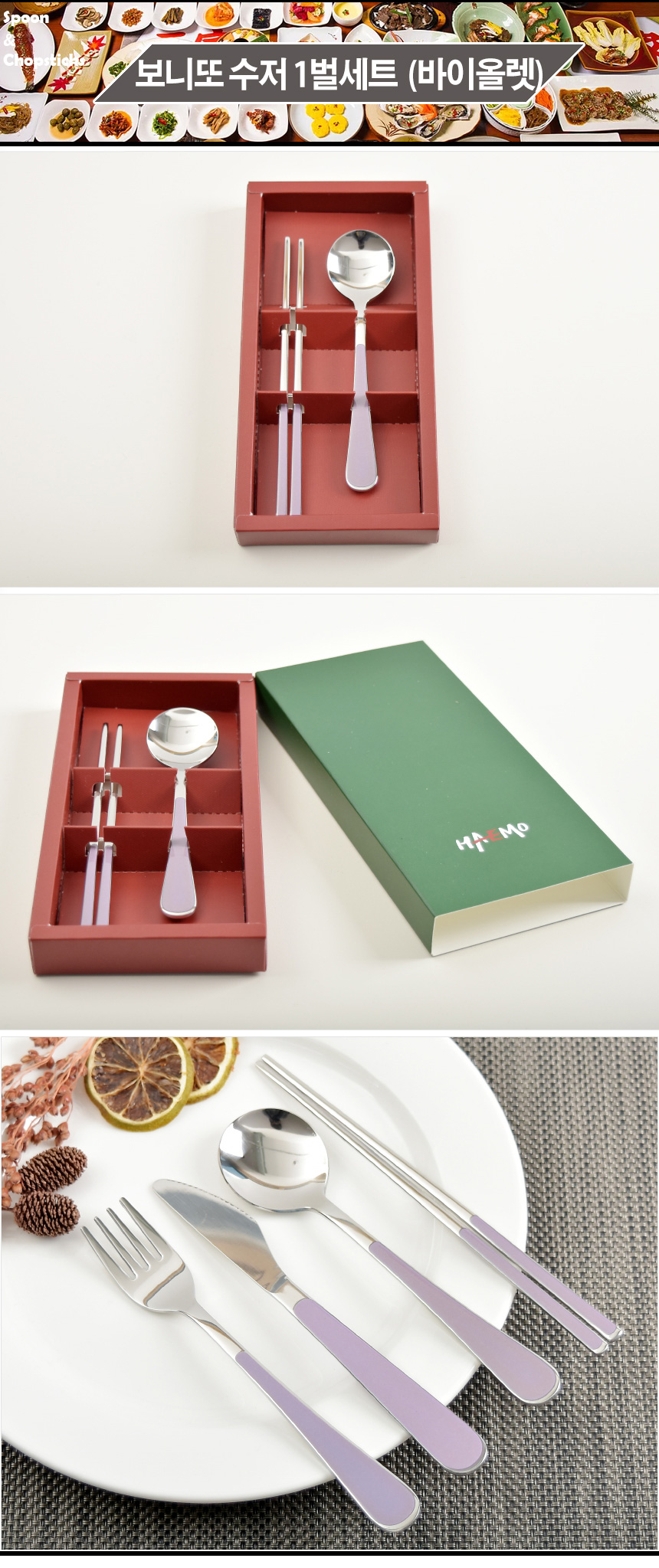 [HAEMO] Bonitto_ Violet, Spoon & Chopsticks, 1 Set_ Reusable Stainless Steel, Korean Chopsticks Spoon _ Made in KOREA