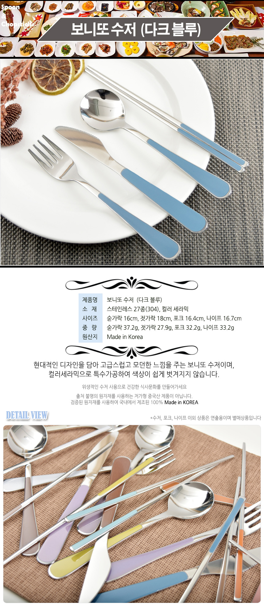 [HAEMO] Bonitto (Dark Blue) Spoon, Chopsticks, Fork, Knife _ Reusable Stainless Steel, Tableware _ Made in KOREA