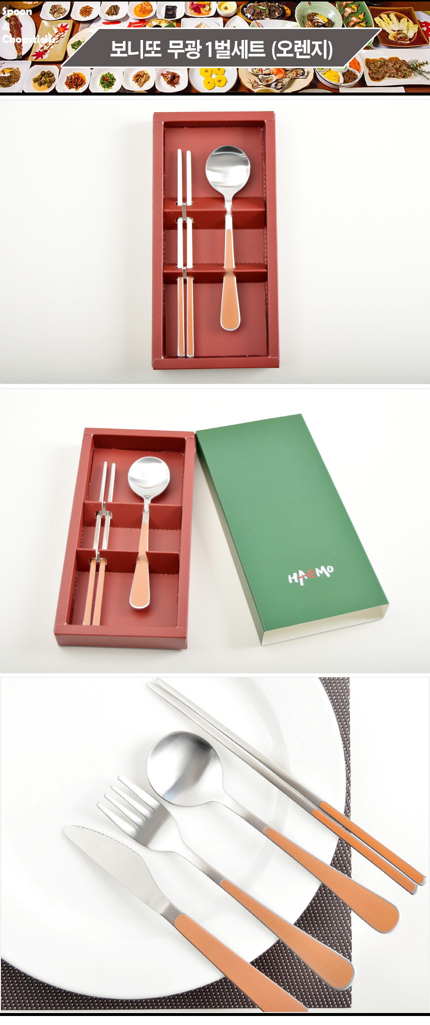 [HAEMO] Bonitto Matte _ Orange, Spoon & Chopsticks, 1 Set _ Reusable Stainless Steel, Korean Chopsticks Spoon _ Made in KOREA