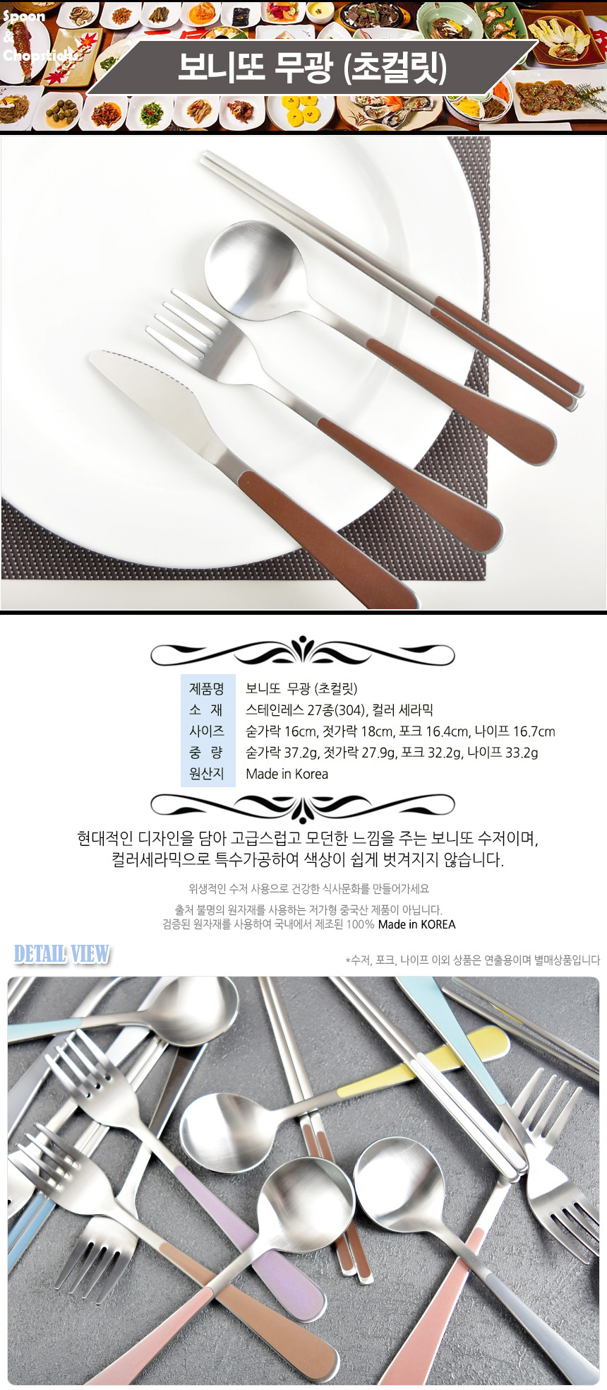 [HAEMO] Bonitto matte, Spoon, Fork, Knife, Chopsticks (Chocolate) _ Reusable Stainless Steel, Korean Chopsticks Spoon _ Made in KOREA