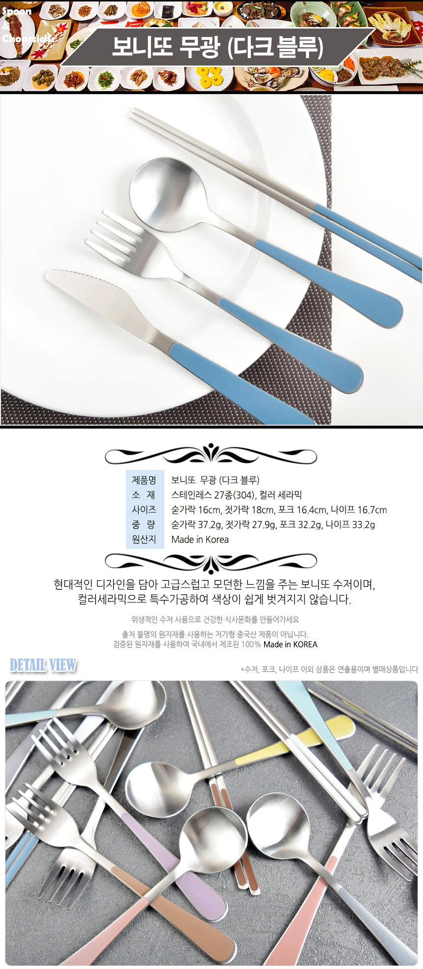 [HAEMO] Bonitto matte (Dark Blue) _ Reusable Stainless Steel Korean Chopsticks Spoon Tableware Home, Kitchen or Restaurant