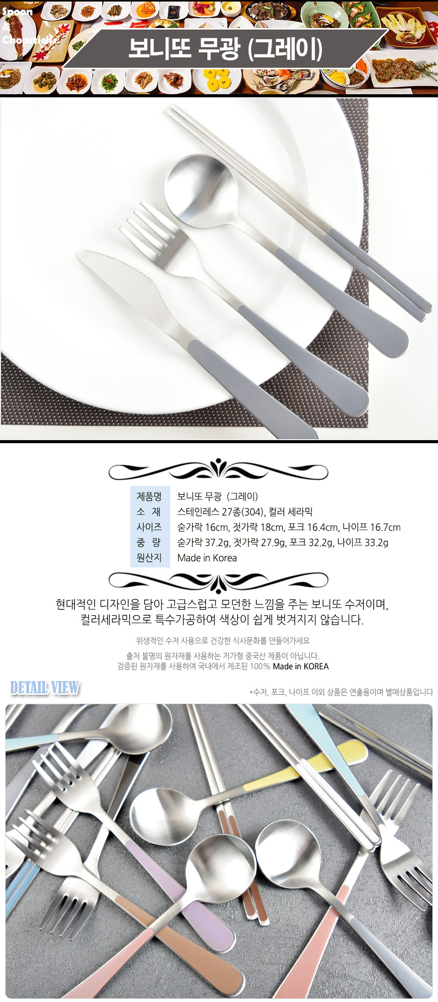 [HAEMO] Bonitto matte, Chopsticks, spoon, Fork, Knife (Gray ) _ Reusable Stainless Steel, Kitchenware _ Made in KOREA