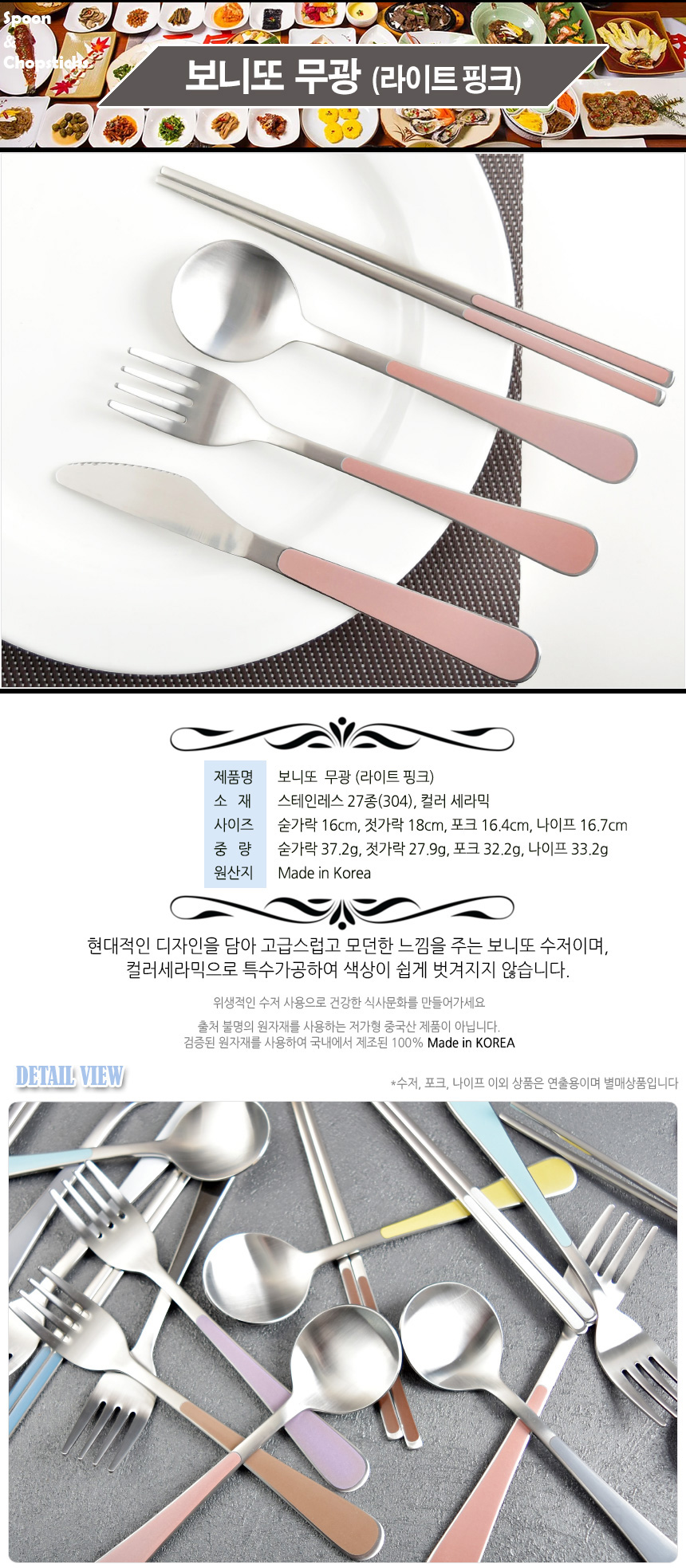 [HAEMO] Bonitto matte (Light Pink) _ Reusable Stainless Steel Korean Chopsticks Spoon Tableware Home, Kitchen or Restaurant