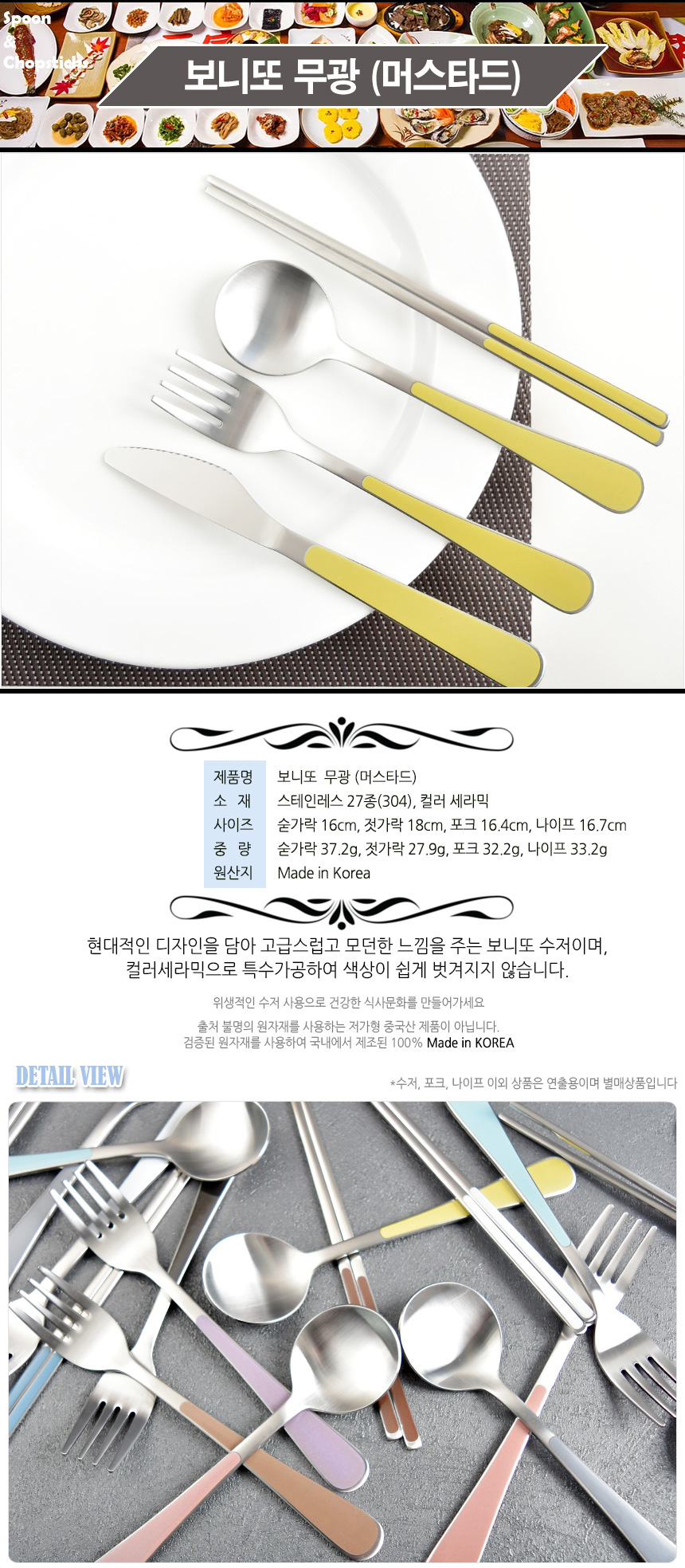 [HAEMO] Bonitto matte (Mustard) _ Reusable Stainless Steel Korean Chopsticks Spoon Tableware Home, Kitchen or Restaurant