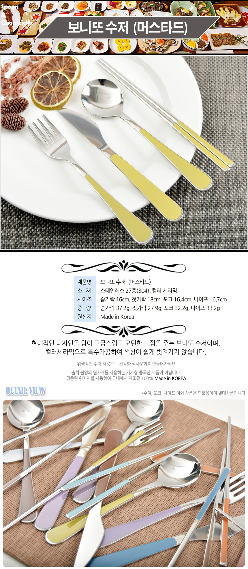 [HAEMO] Bonitto (Mustard) Spoon & Chopsticks _ Reusable Stainless Steel Korean Chopsticks Spoon Tableware Home, Kitchen or Restaurant