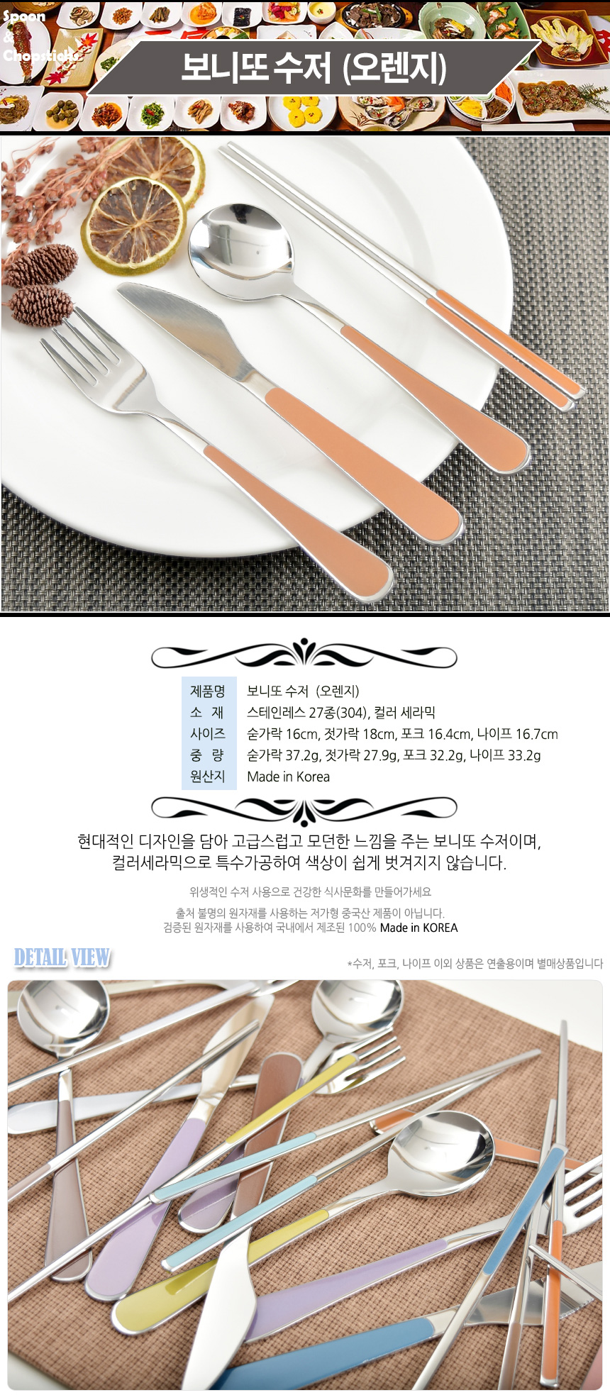 [HAEMO] Bonitto (Orange) Spoon & Chopsticks _ Reusable Stainless Steel Korean Chopsticks Spoon Tableware Home, Kitchen or Restaurant