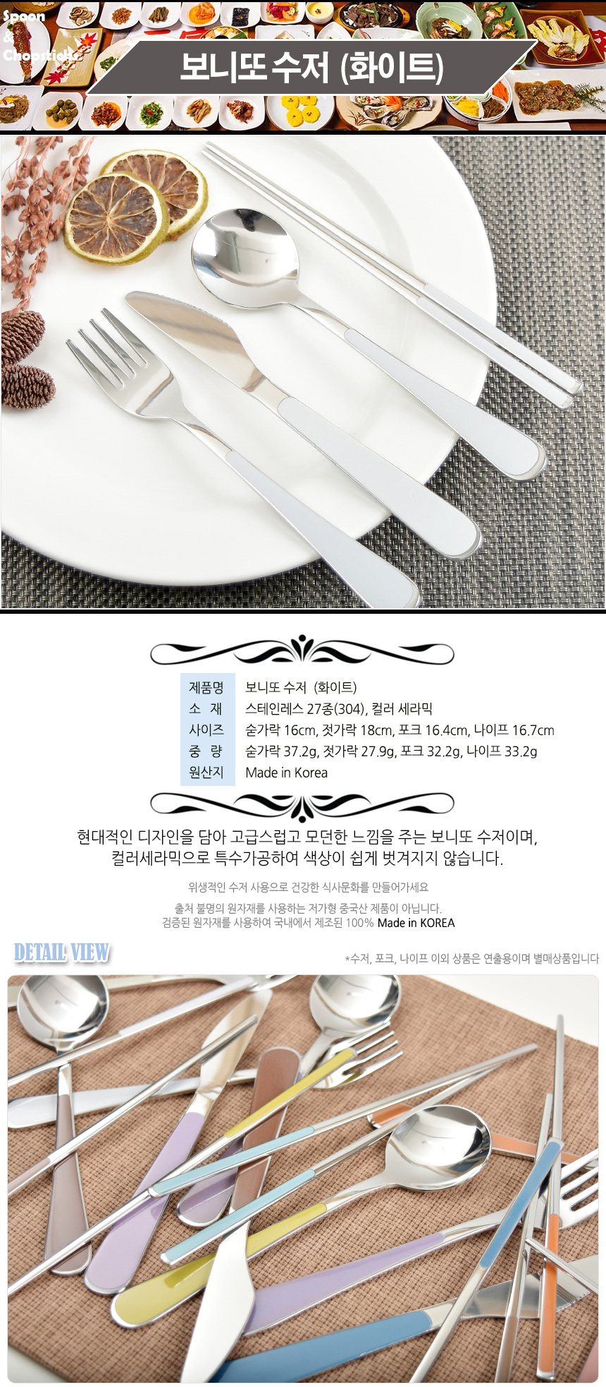 [HAEMO] Bonitto (White) Spoon & Chopsticks _ Reusable Stainless Steel Korean Chopsticks Spoon Tableware Home, Kitchen or Restaurant