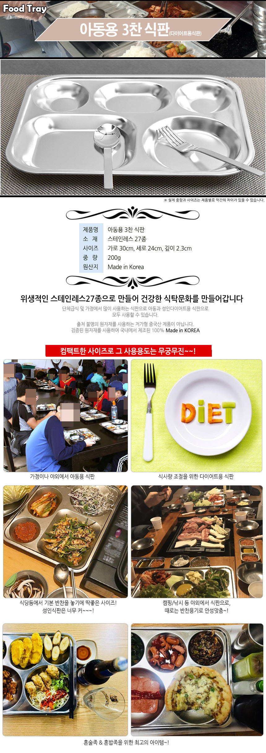 [HAEMO] children's 3-side meal tray _ Reusable Stainless Steel, Kid Food Tray _ Made in KOREA