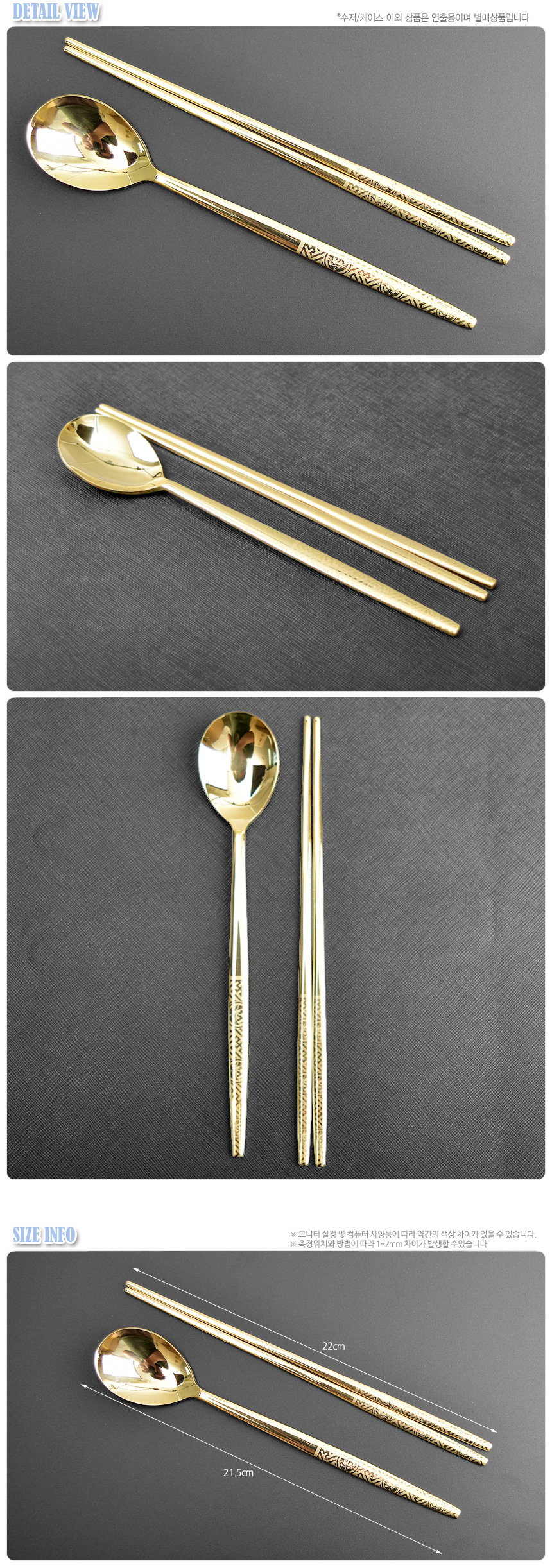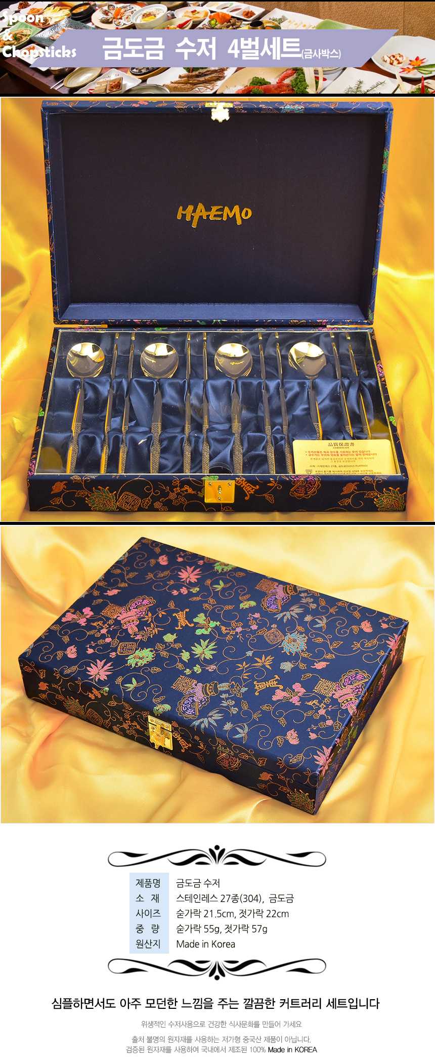 [HAEMO] gold-plate Spoon Chopsticks, 4 Set (Gold thread box) _ Reusable Stainless Steel, Korean Chopstick Spoon _ Made in KOREA