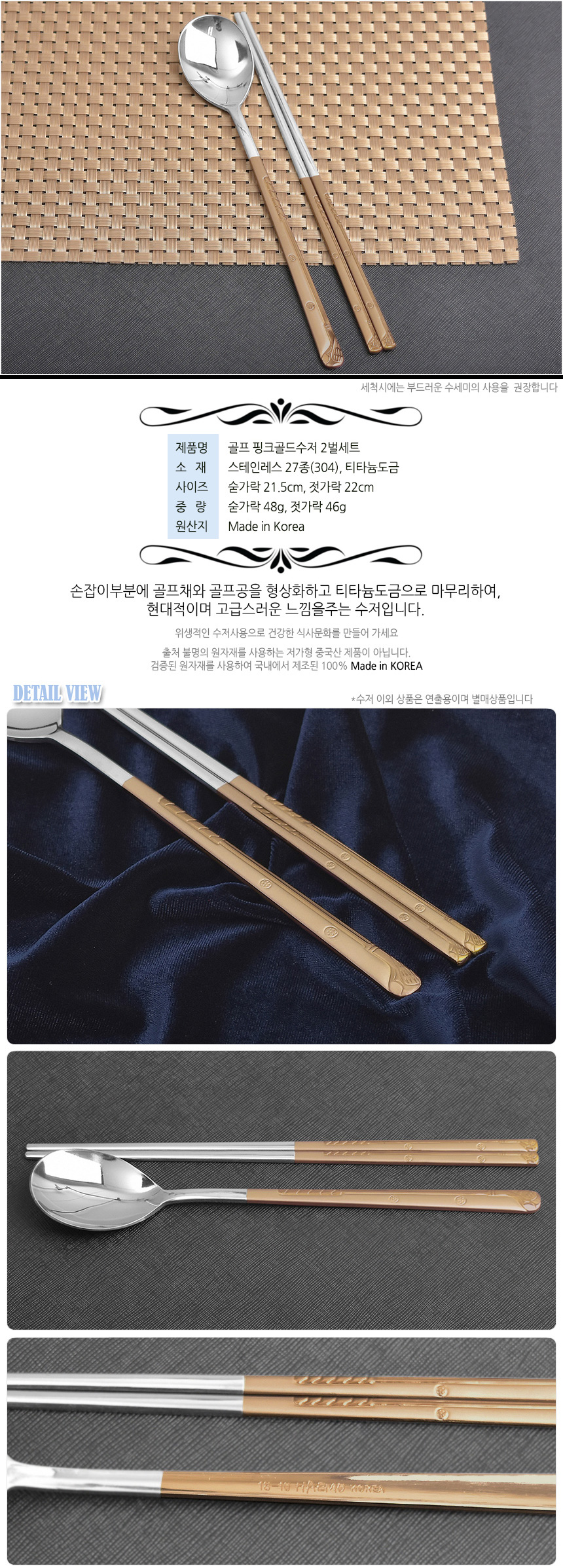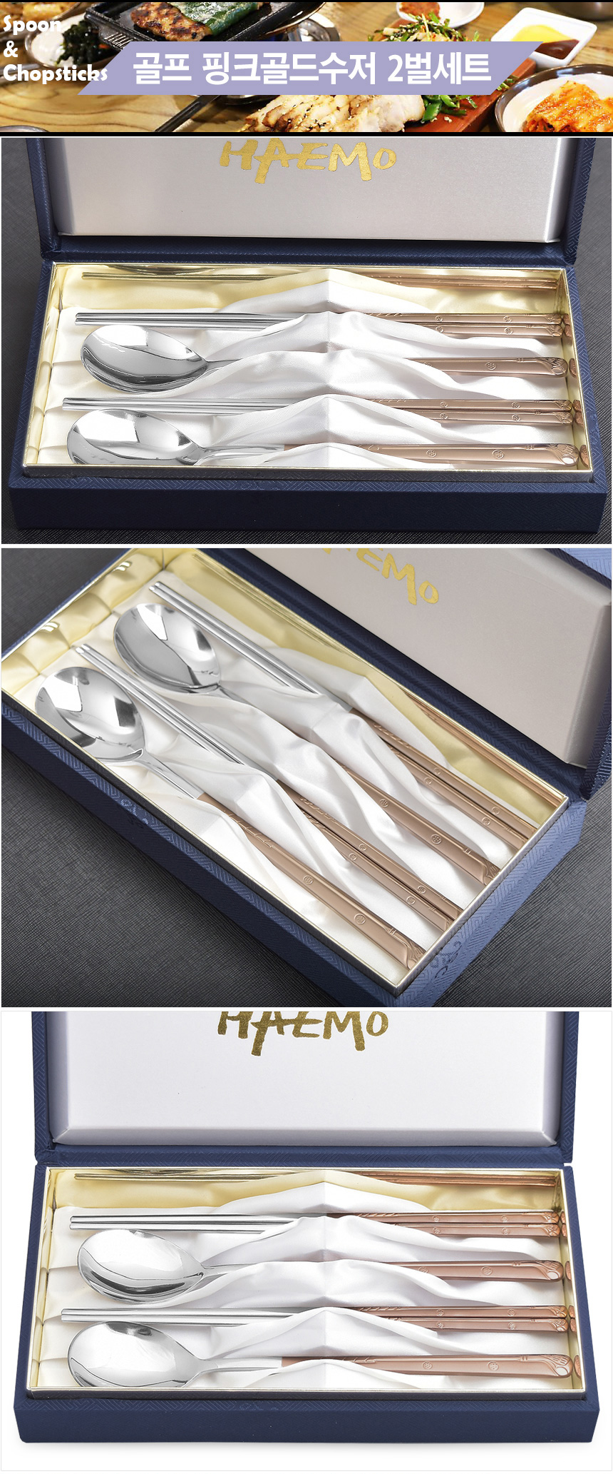 [HAEMO] Golf Pink Gold Cutlery 2Set(Silk box)-Spoon Chopsticks Korean Stainless Steel Cutlery-Made in Korea