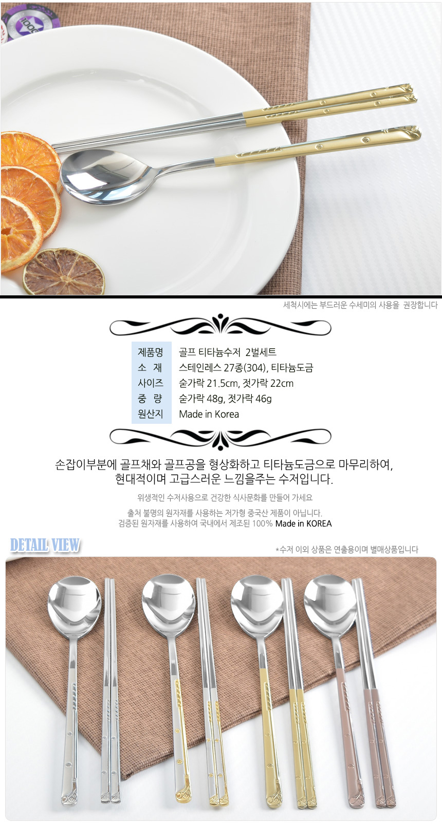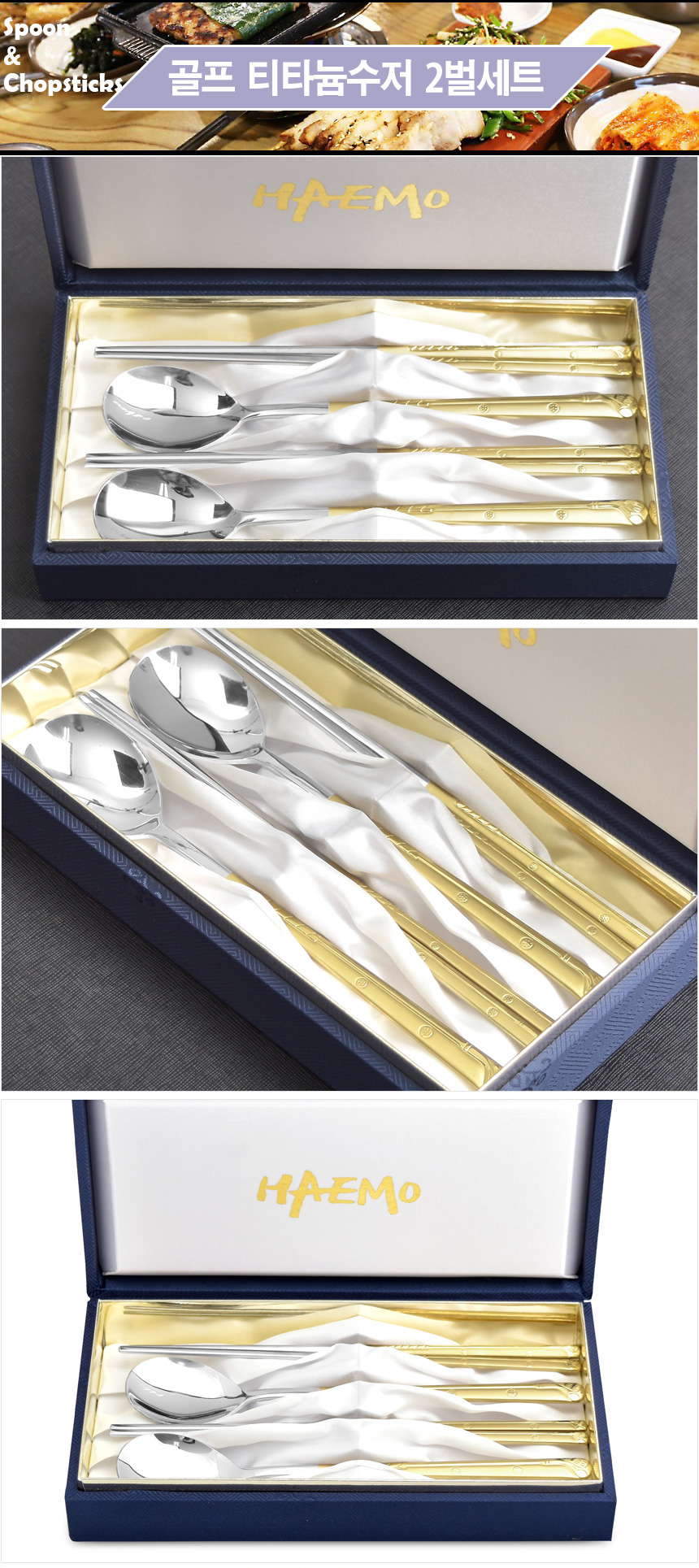 [HAEMO] Golf Titanium Cutlery 2 Set(Silk box)-Spoon Chopsticks Korean Stainless Steel Cutlery-Made in Korea