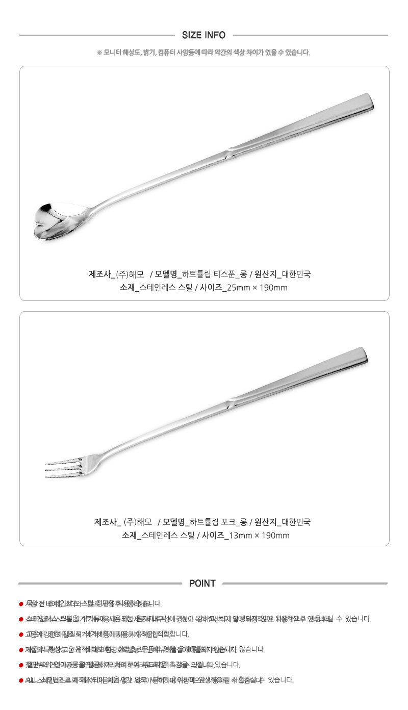 [HAEMO] Heart Long Teaspoon & Tea-fork, 1P Pet _ Reusable Stainless Steel, Tableware _ Made in KOREA
