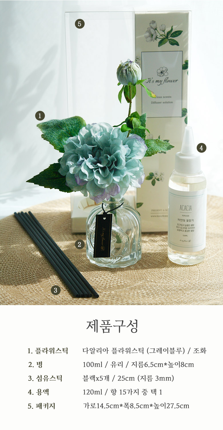 [It's My Flower] Birth of September Dahlia diffuser set (Gray Blue), Air Freshener _ Made in KOREA
