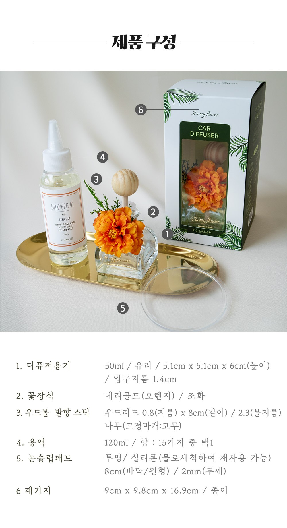 [It's My Flower] Marigold(Orange) Diffuser for Cars (120ML) / Car Air Freshener