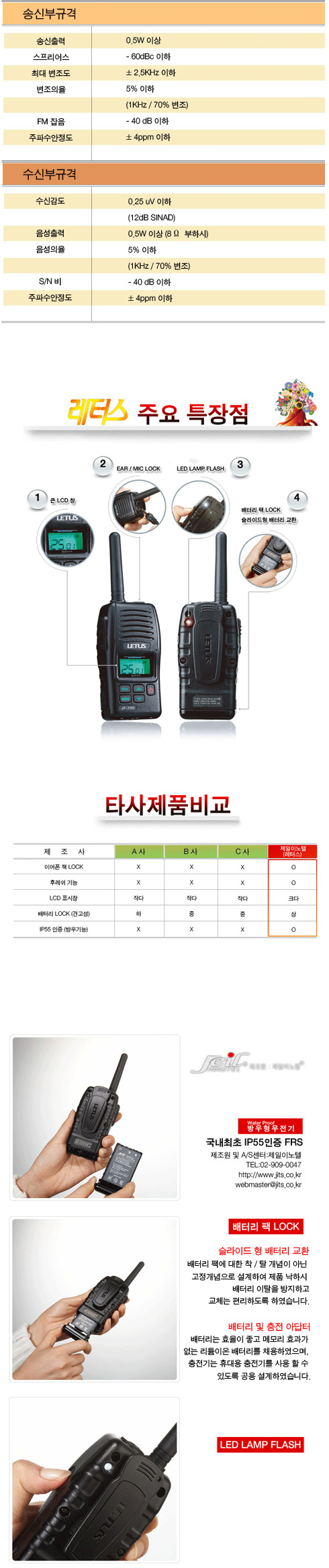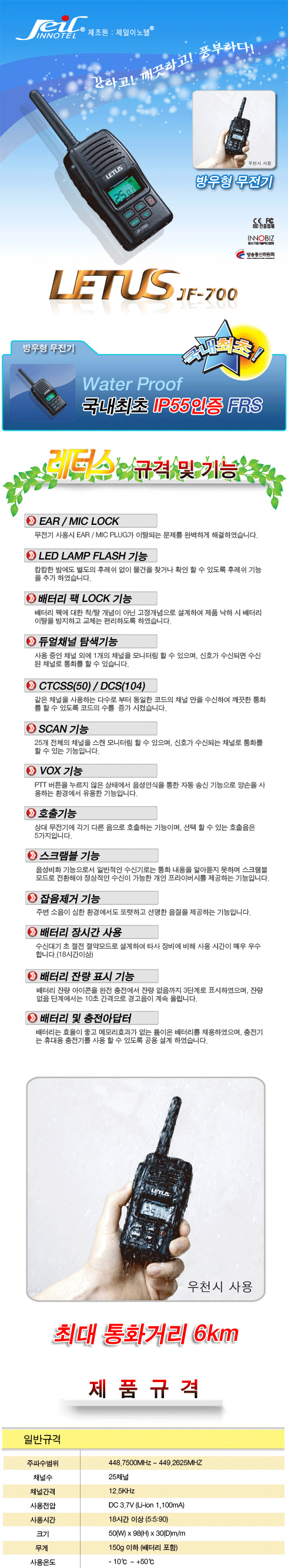 [JEILINNOTEL] JF700_ Rain-Proof Walkie-Talkie, Dual Channel Searchable, Ultra Power Saving _ Made in KOREA