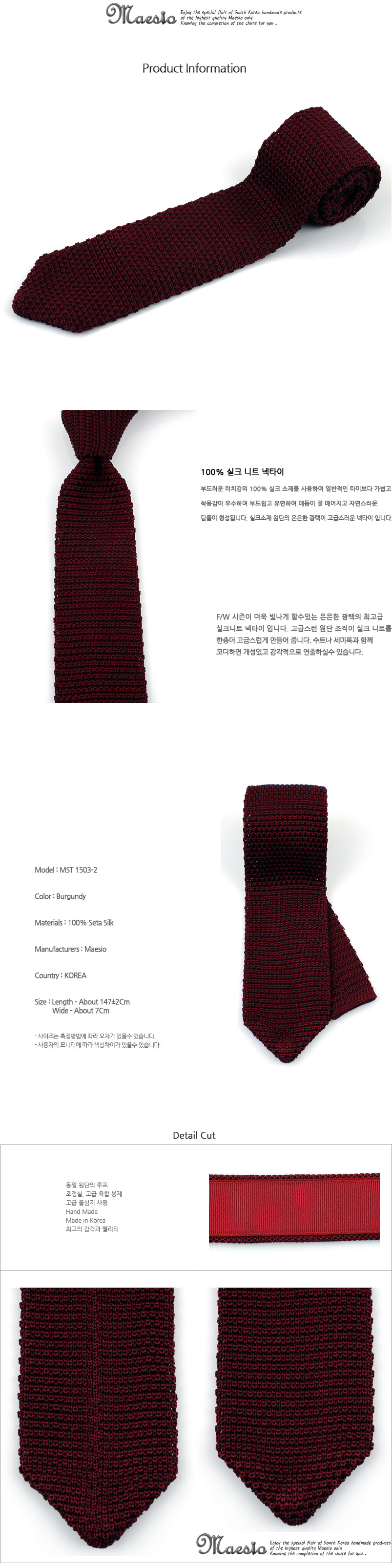 [MAESIO] MST1503 Solid Silk Knit Necktie 7cm 6Color _ Men's Ties Formal Business, Ties for Men, Prom Wedding Party, All Made in Korea