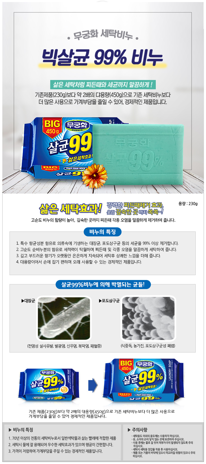 [MUKUNGHWA] Big 99% Sterilization Laundry Soap 450g _ Laundry Detergent, Kills 99% of bacteria and germs