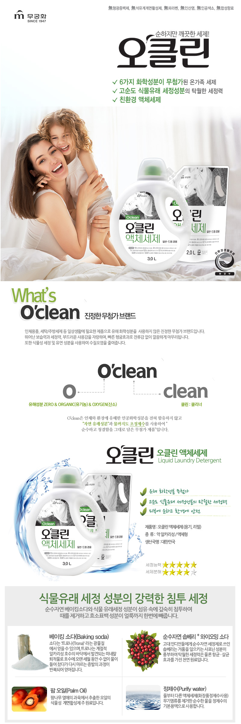 [MUKUNGHWA] O’Clean Liquid Laundry Detergent 3L _ Laundry Detergents, Liquid Detergents, For Washing Machine