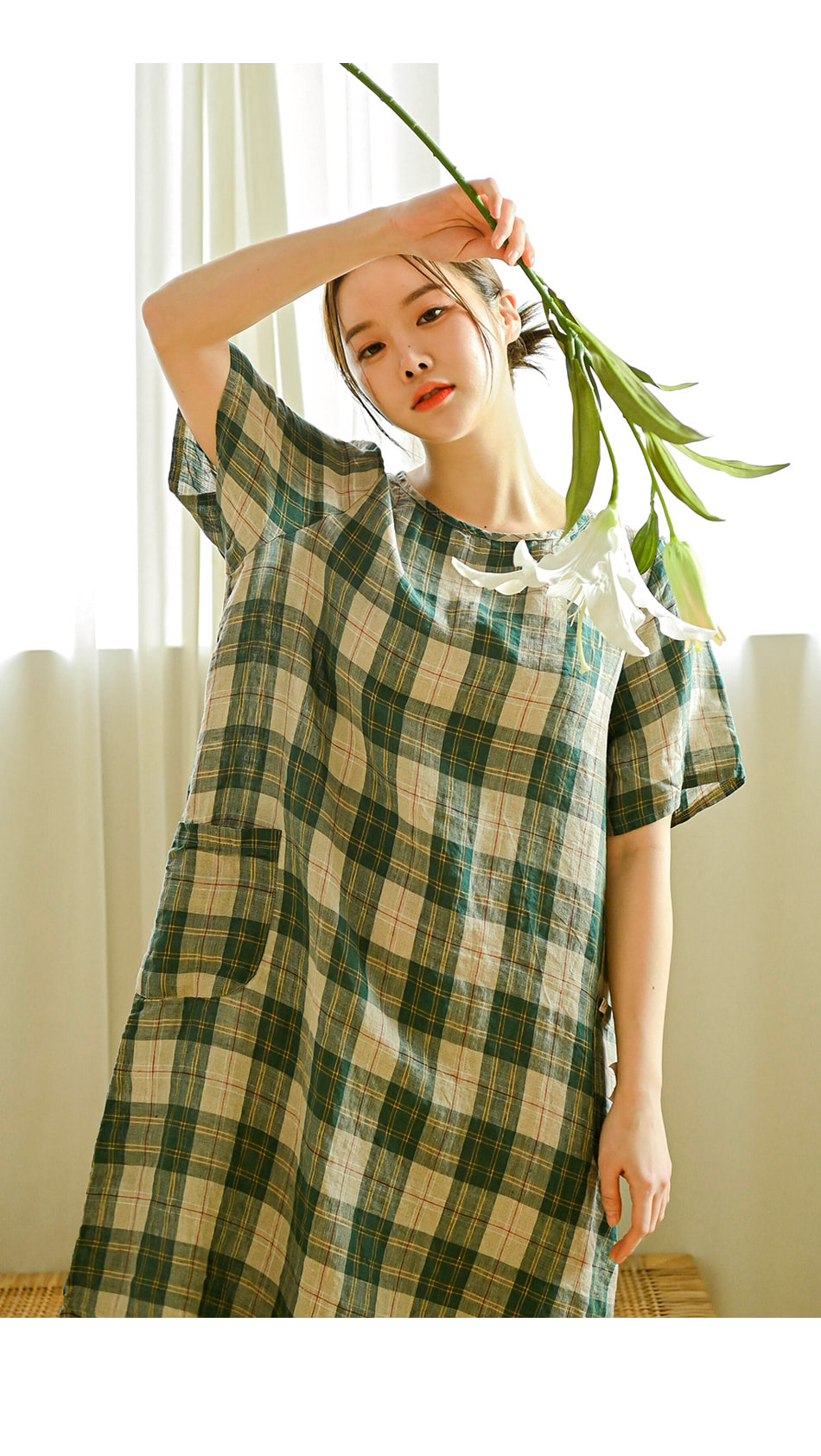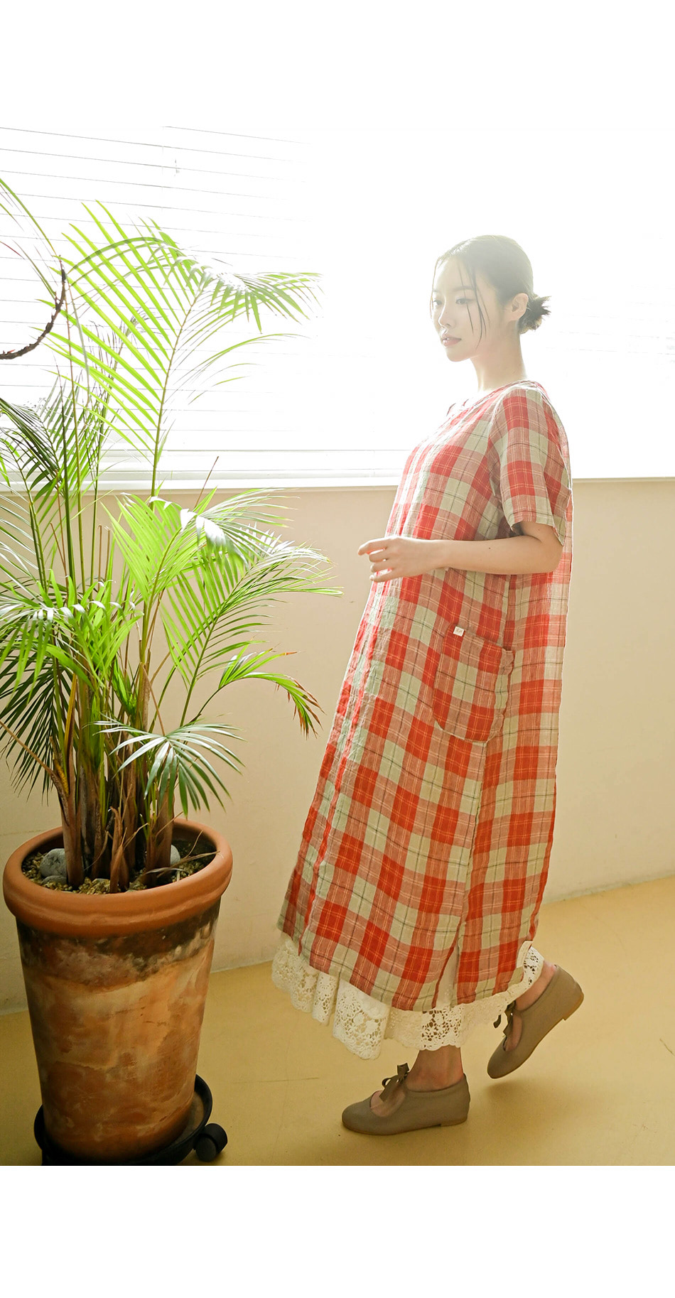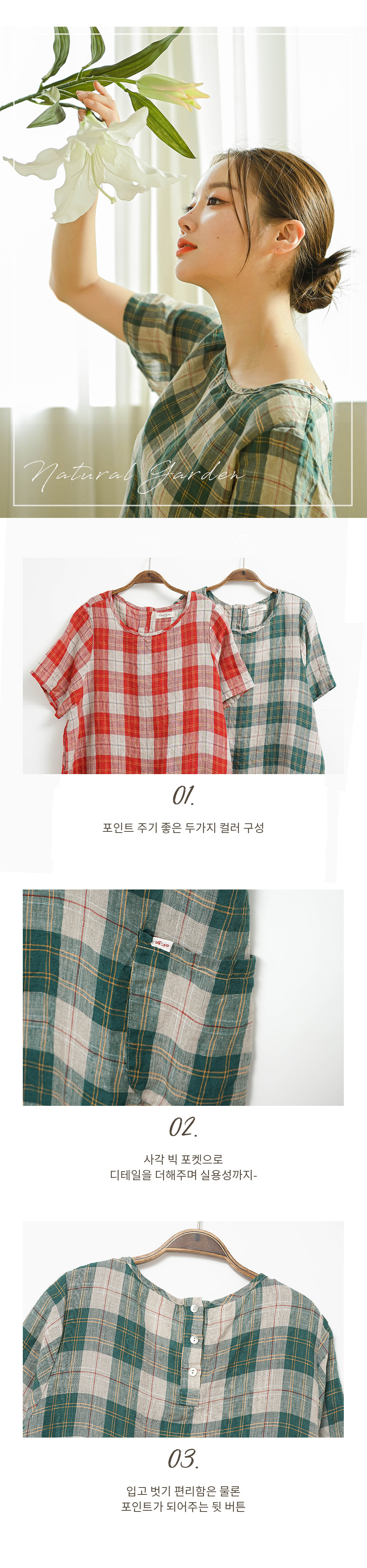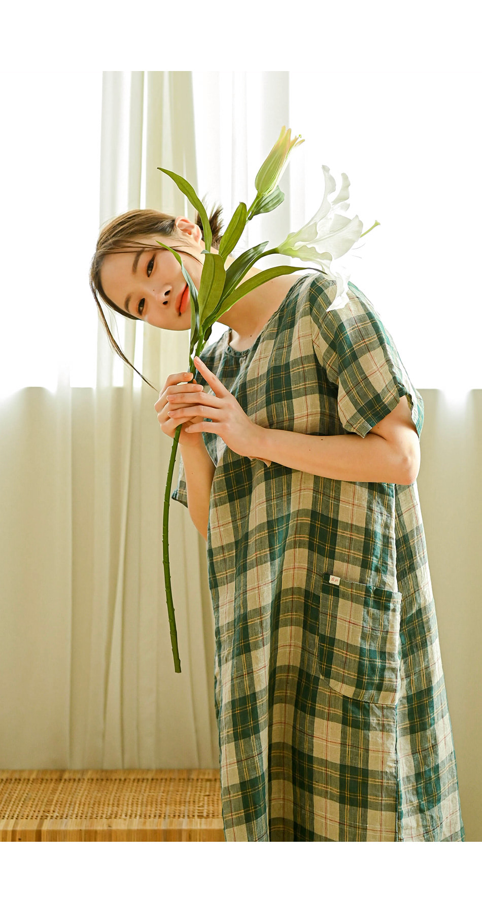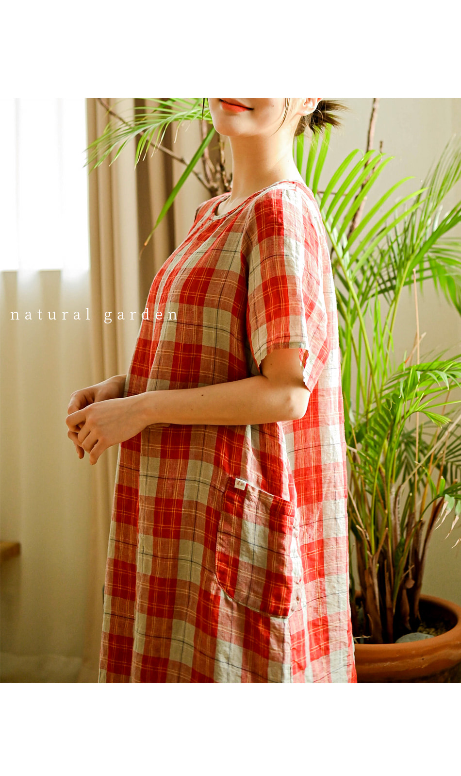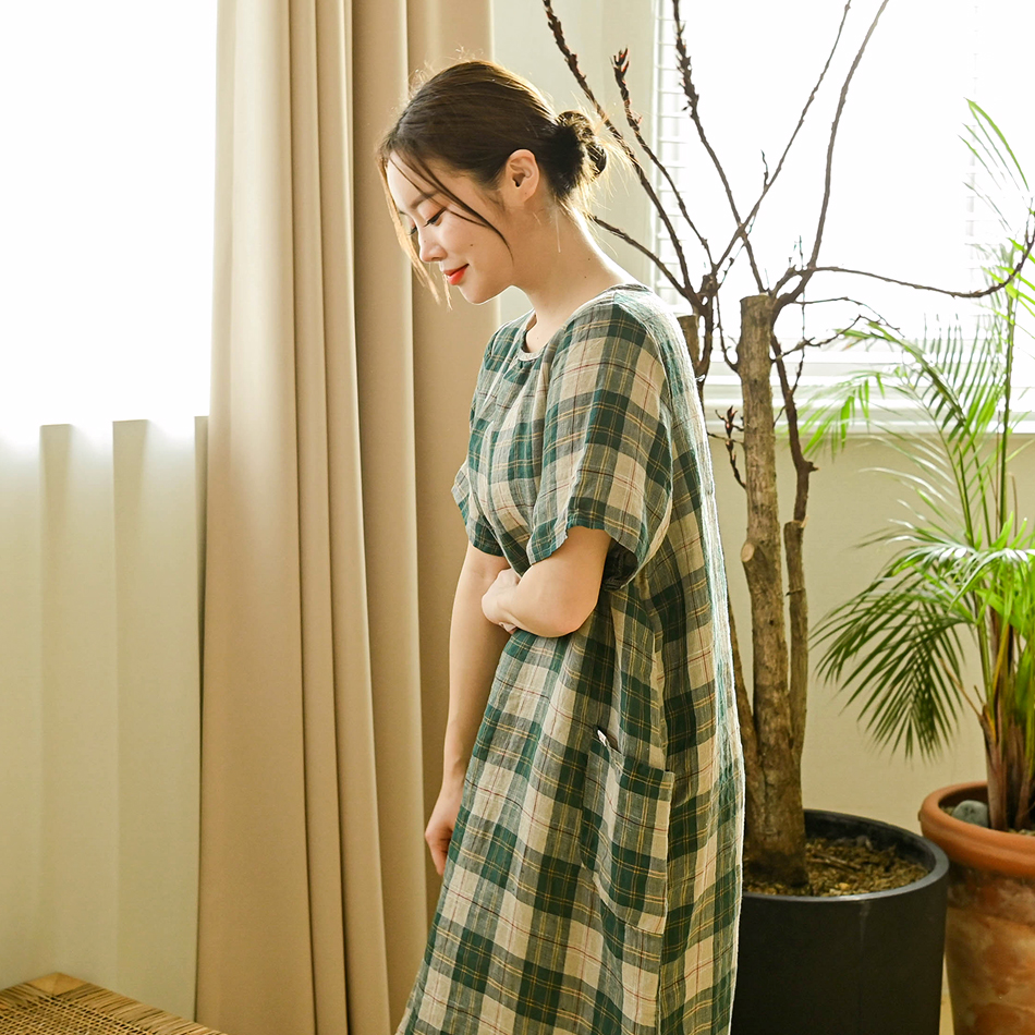 [Natural Garden] MADE N Side pocket check short sleeve linen dress_High quality material, light linen material_ Made in KOREA
