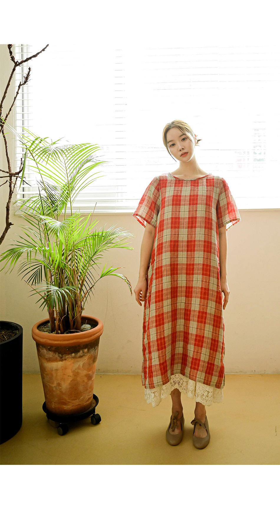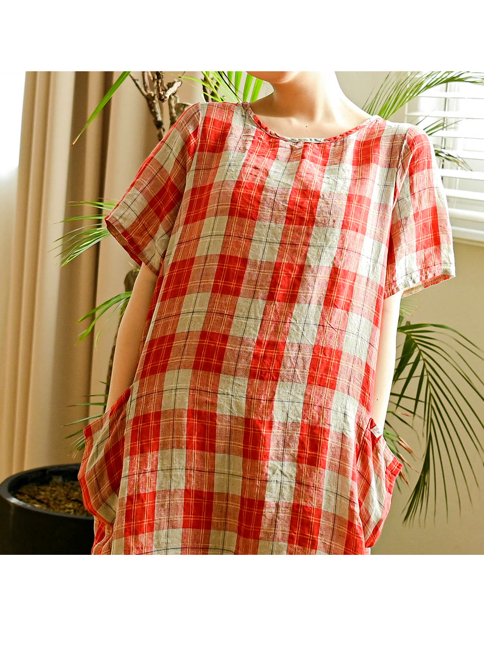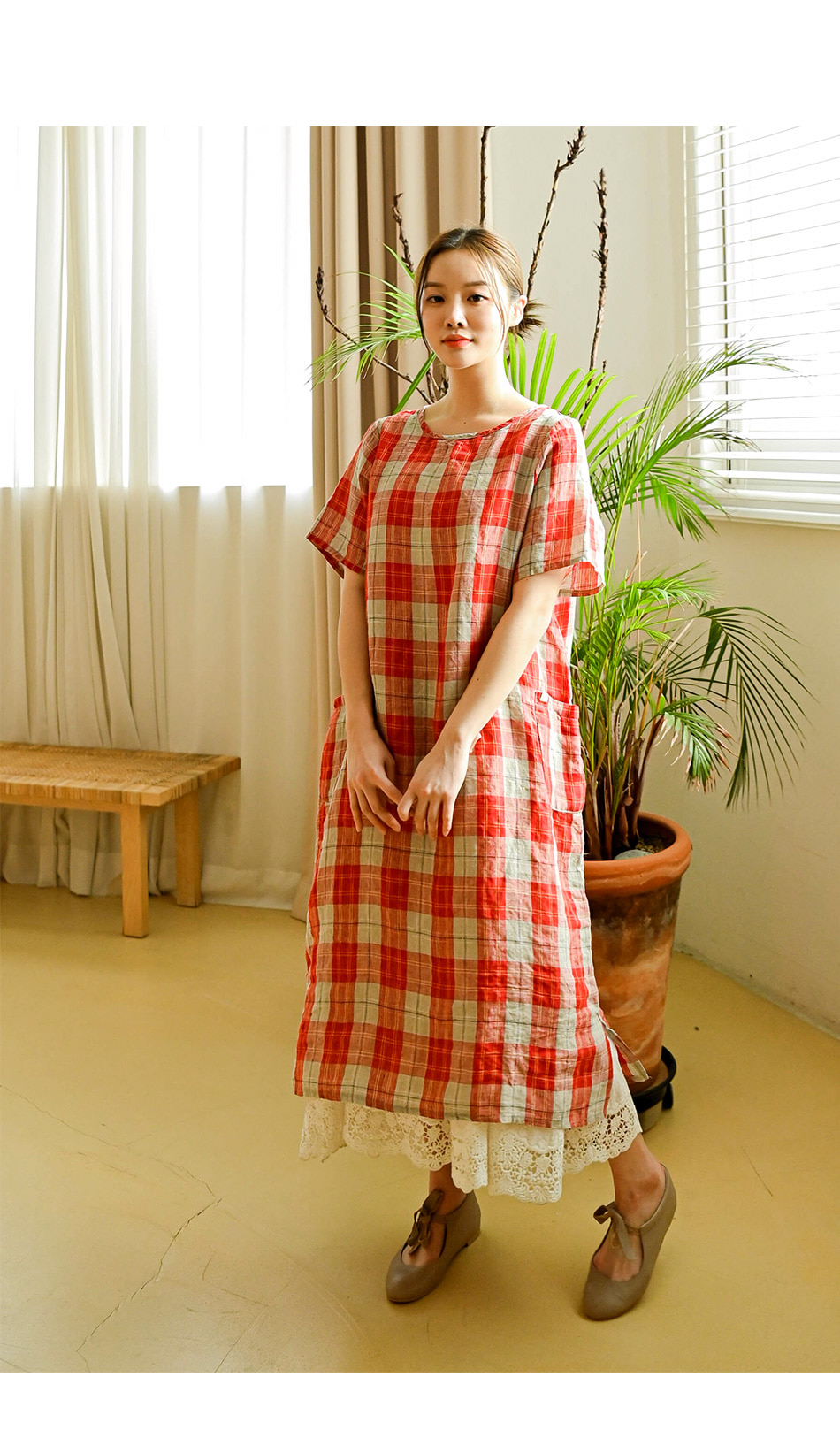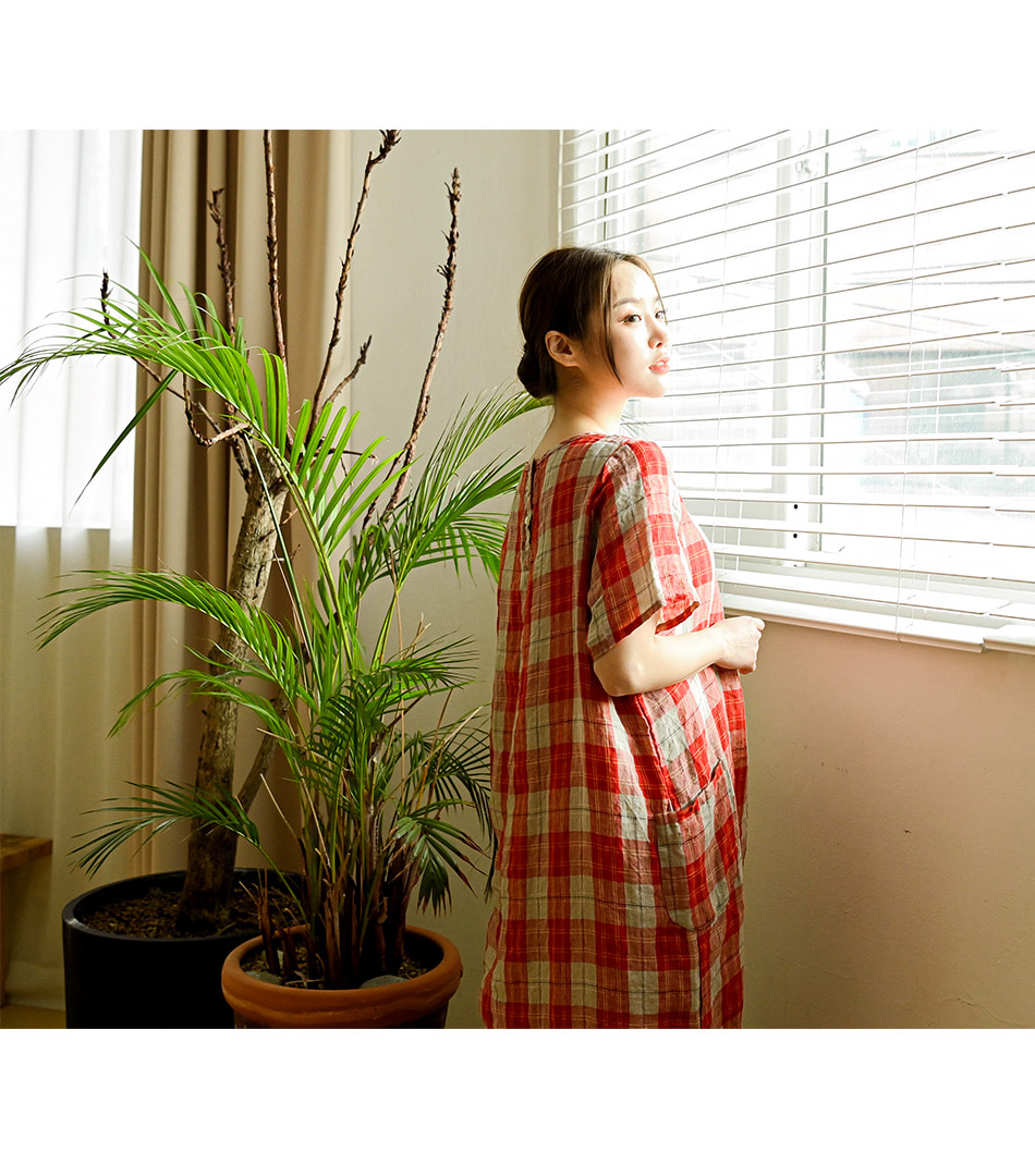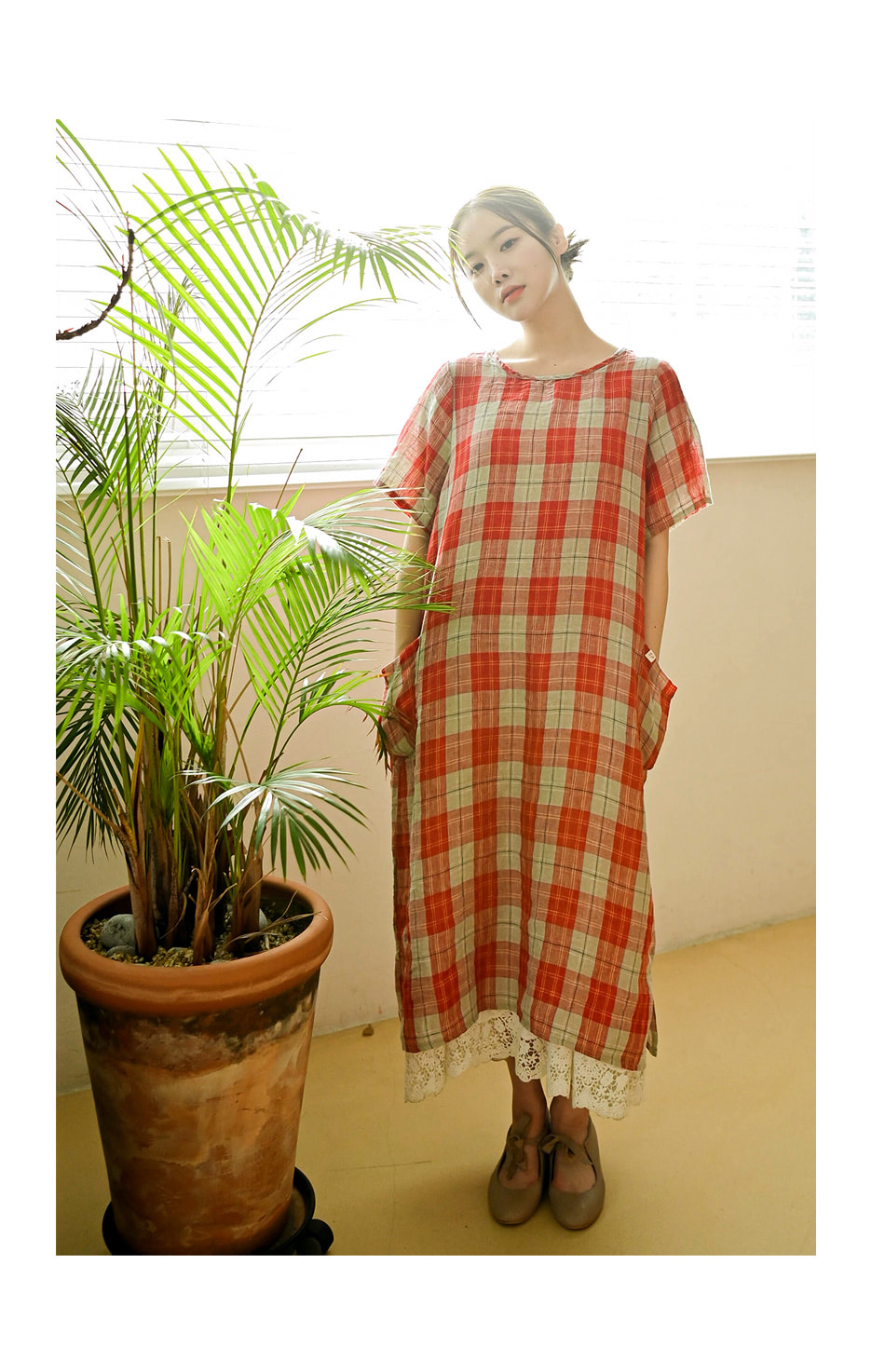 [Natural Garden] MADE N Side pocket check short sleeve linen dress_High quality material, light linen material_ Made in KOREA