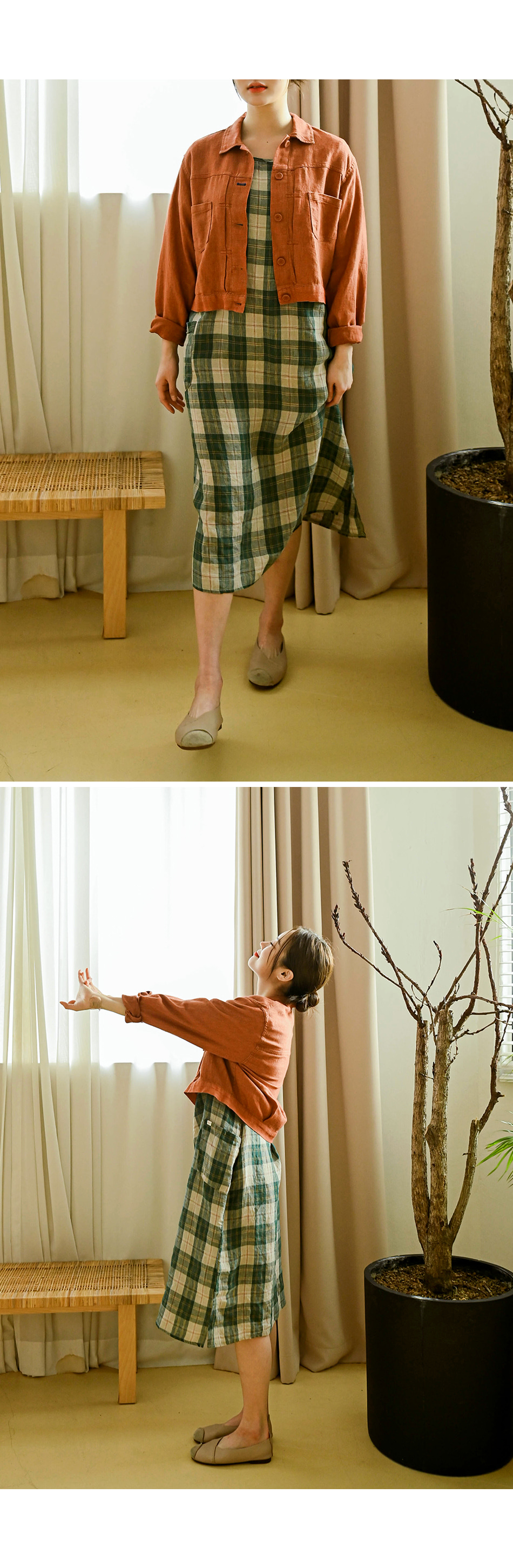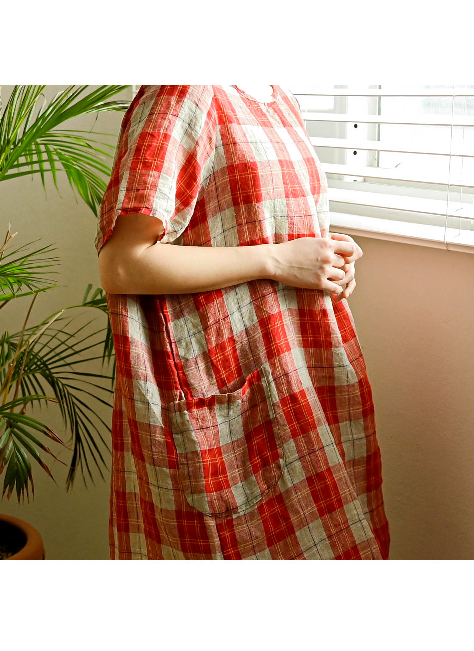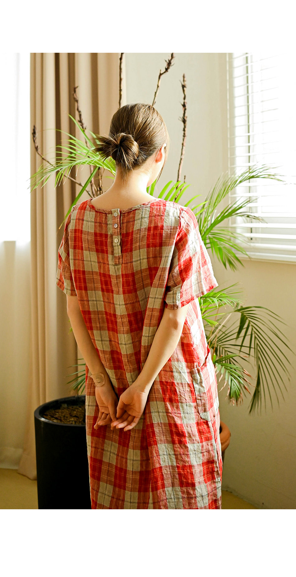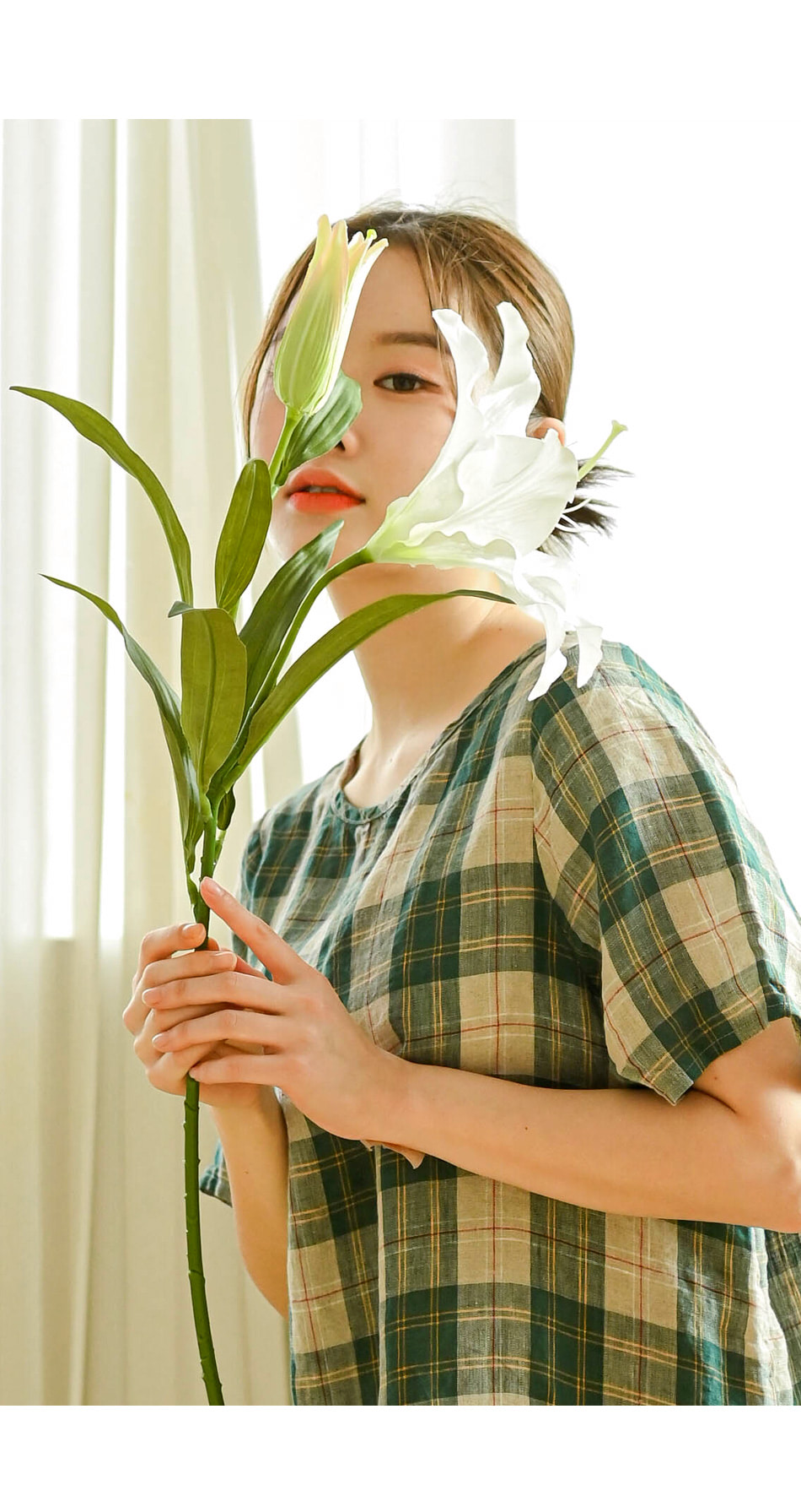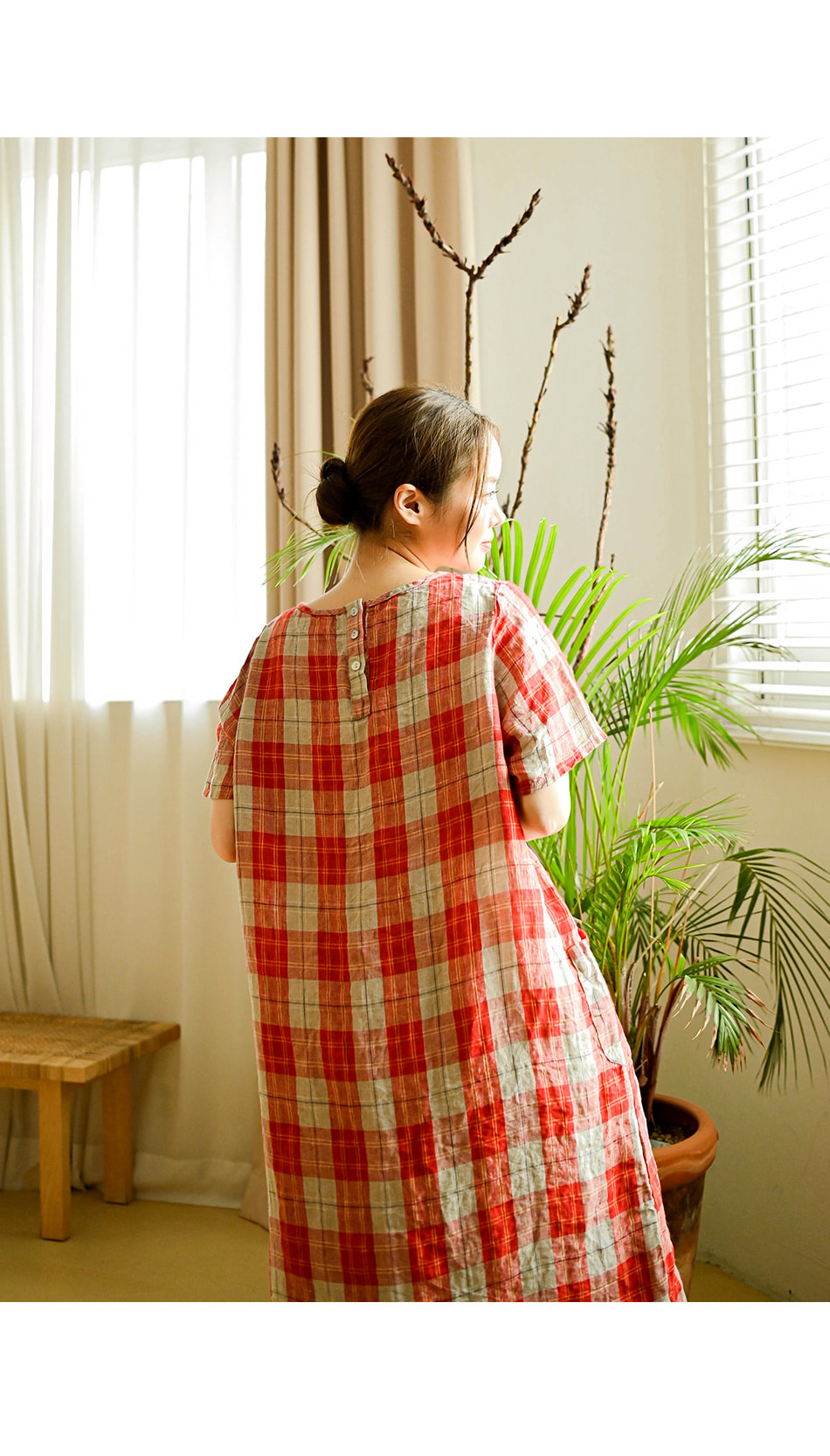[Natural Garden] MADE N Side pocket check short sleeve linen dress_High quality material, light linen material_ Made in KOREA