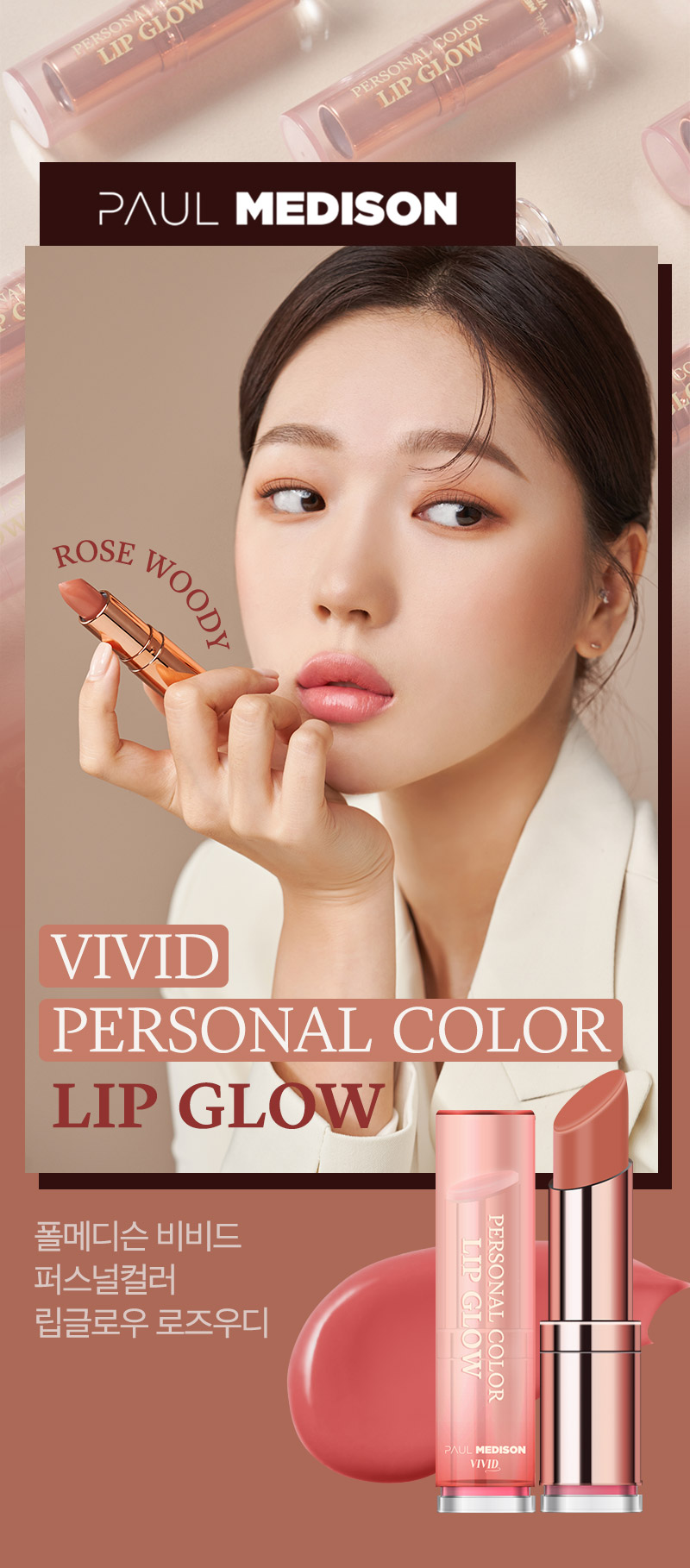[Paul Medison] Vivid Personal Color Lip Glow RoseWoody _ 3g/ 0.1oz, Tinted Lip Balm, Glossy, Long Lasting Natural Moody Color_ Made in Korea