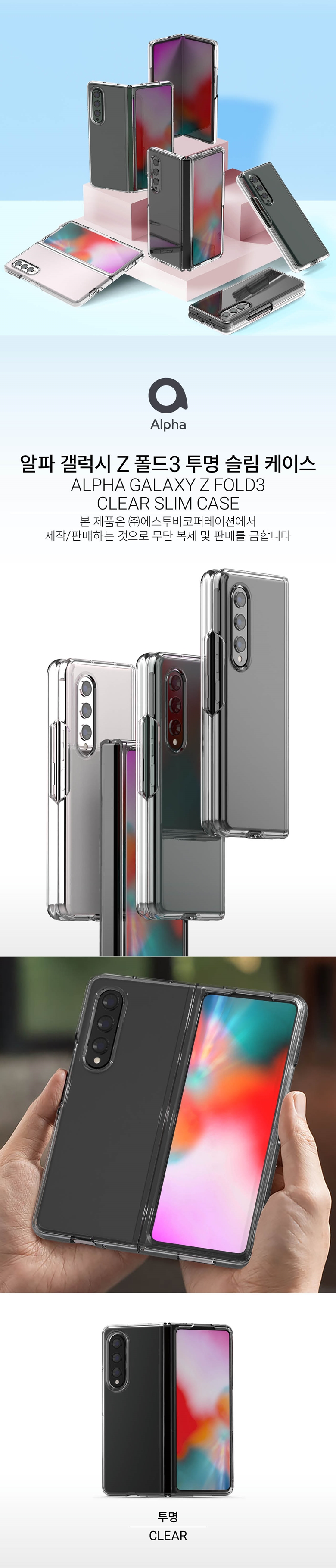 [S2B] Alpha Galaxy Z Fold Clear Slim Bumper _A transparent and slim design bumper for Samsung Galaxy Z Fold 3, Made in Korea