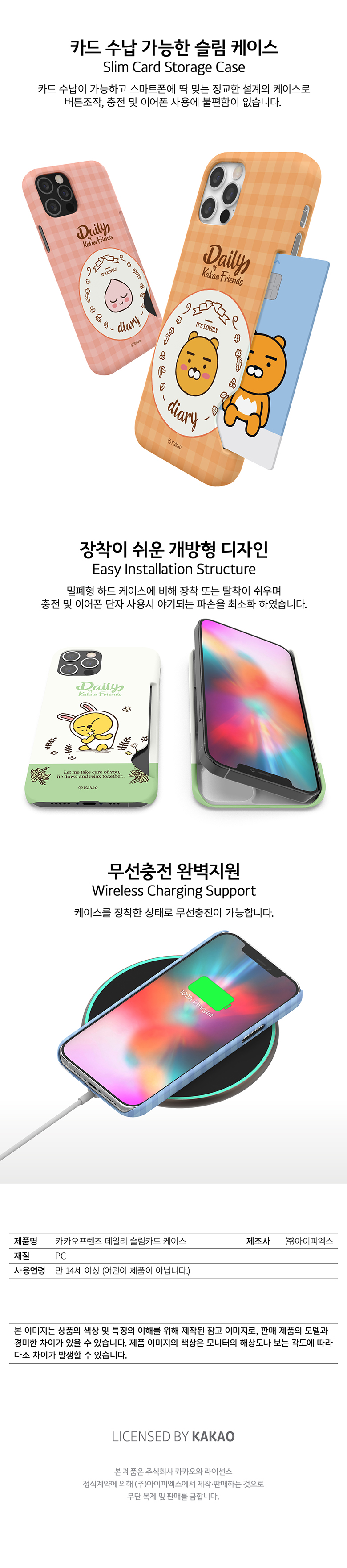 [S2B] Kakao Friends Daily Slim Card Case-Smartphone Bumper Camera Guard iPhone Galaxy Case-Made in Korea