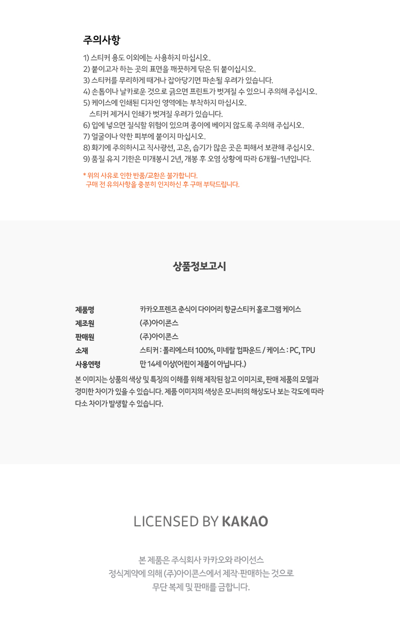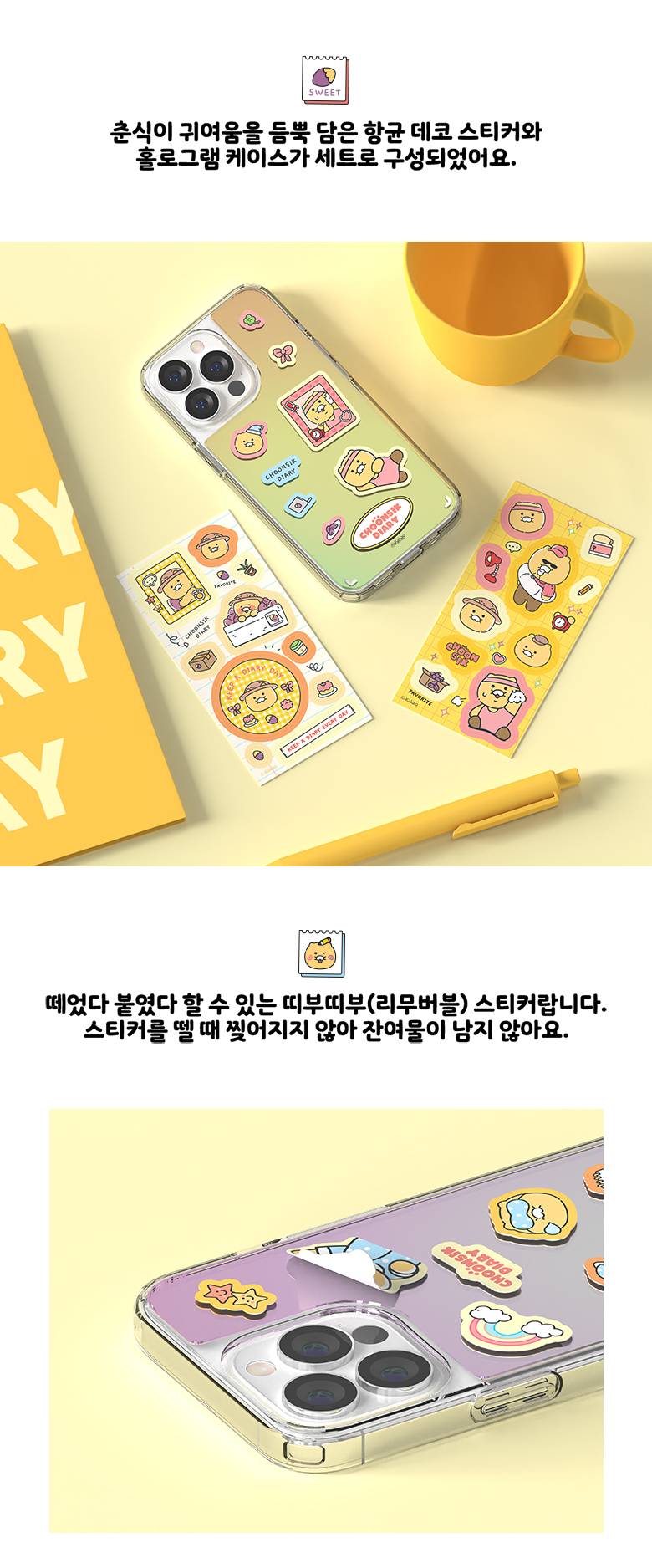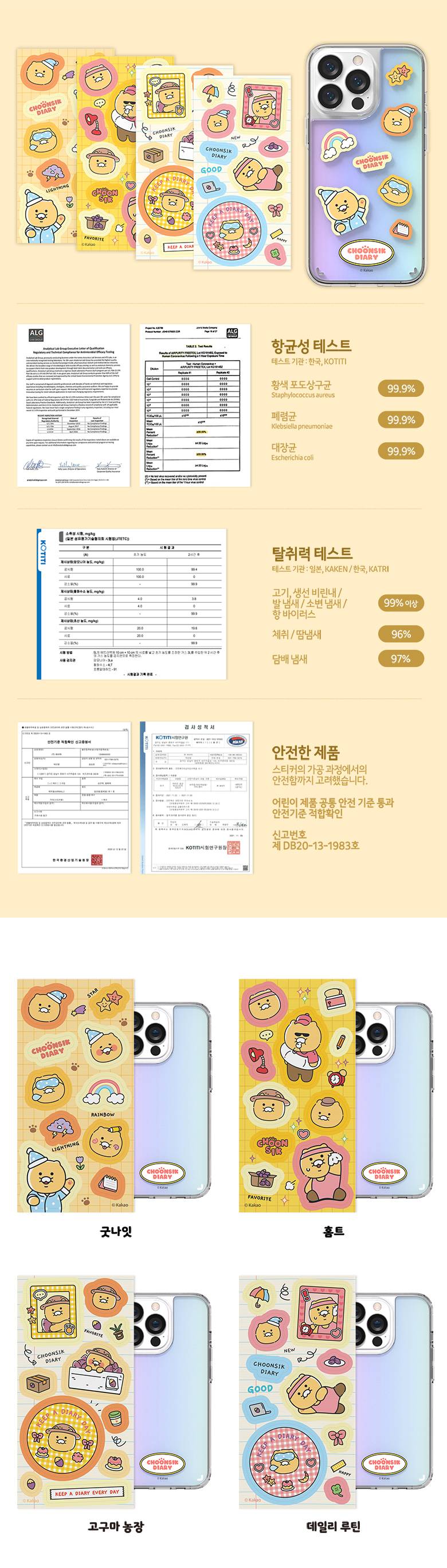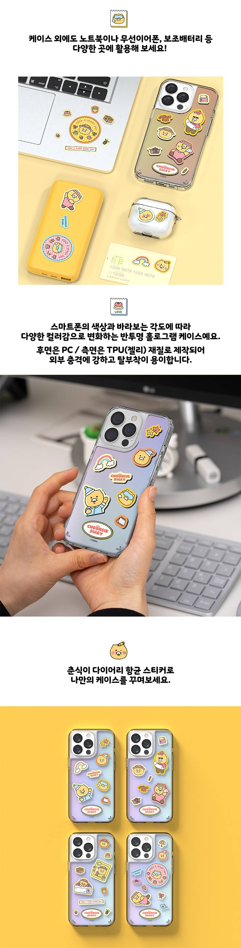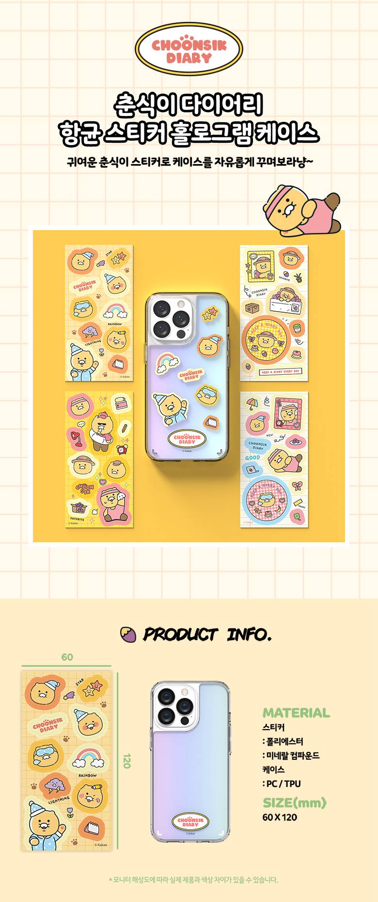 [S2B] Kakao Friends CHOONSIK Diary Antibacterial Sticker Hologram Case-Custom Case, Translucent Case, Jelly Case-Made in Korea