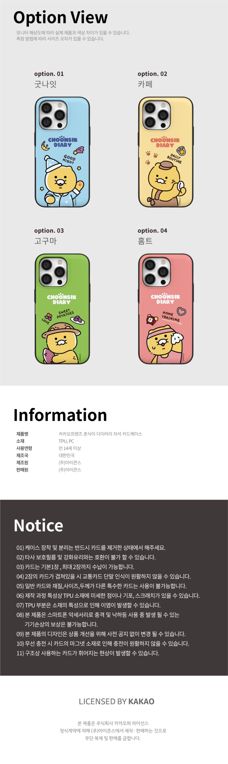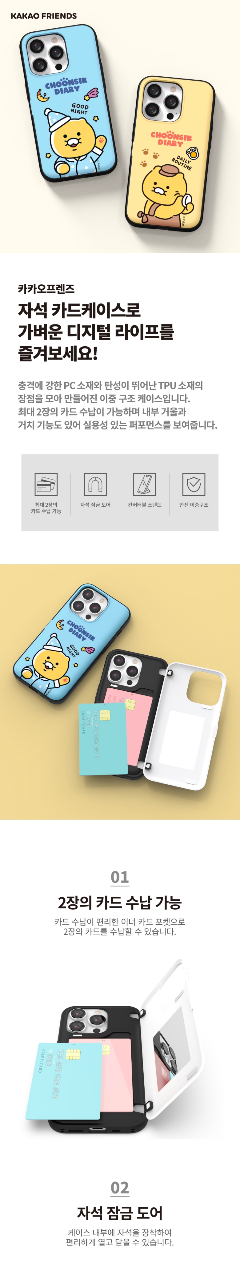 [S2B] Kakao Friends CHOONSIK Diary Magnet Card Case-Smartphone Bumper Card Storage Pocket Mirror iPhone Galaxy Case-Made in Korea
