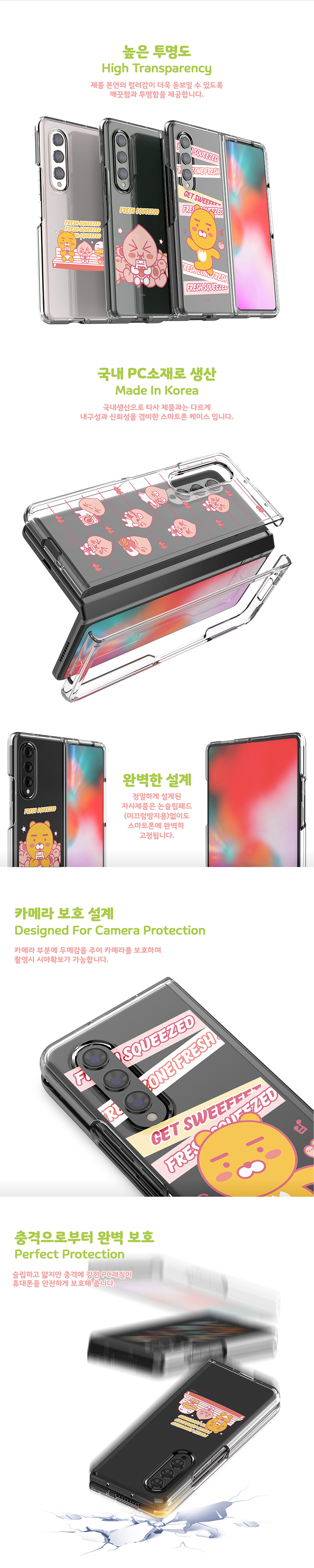 [S2B]Kakao Friends Just Apeach Galaxy Z Fold 3 Transparent Slim Case _Slim and safe phone bumper_ Made in Korea