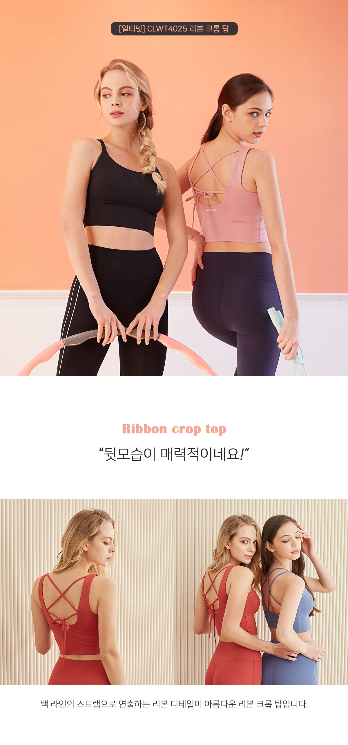 [Ultimate] CLWT4025 Ribbon Crop Top Deep Rose, Gym wear,Tank Top, yoga top, Jogging Clothes, yoga bra, Fashion Sportswear, Casual tops For Women _ Made in KOREA